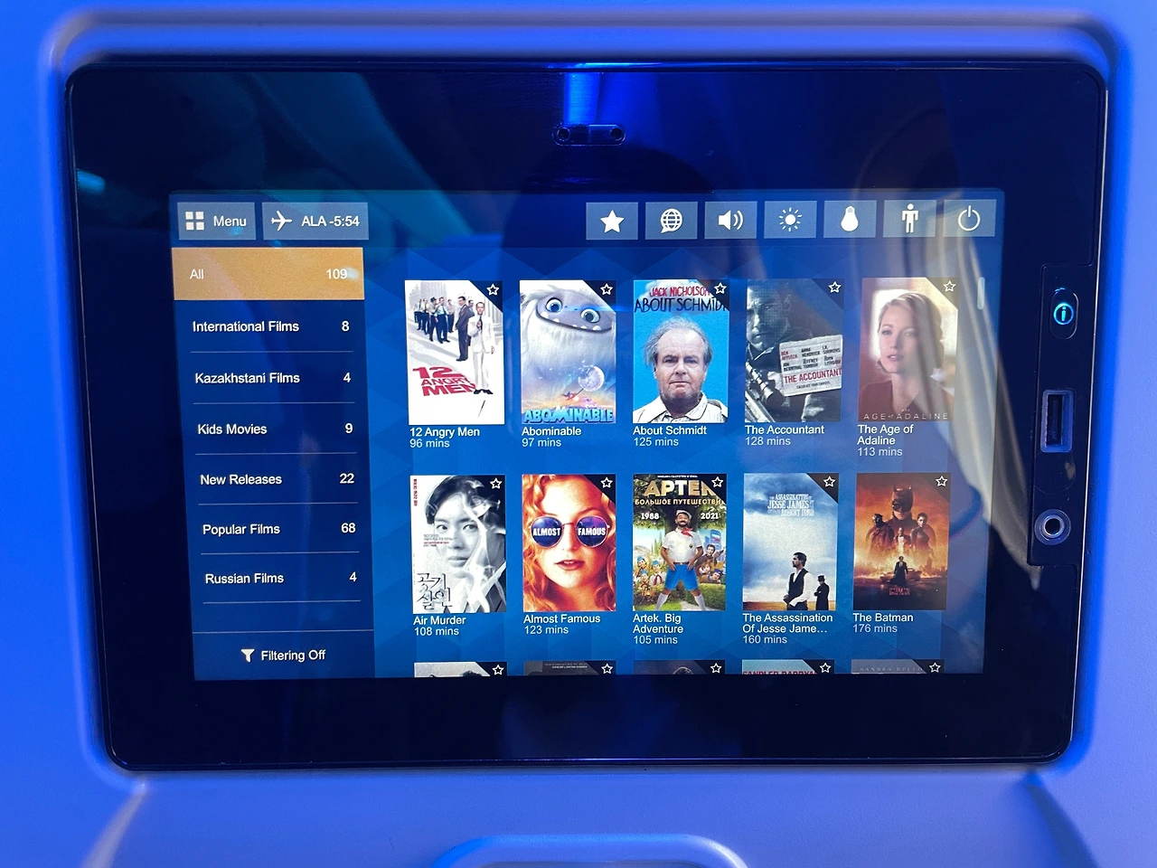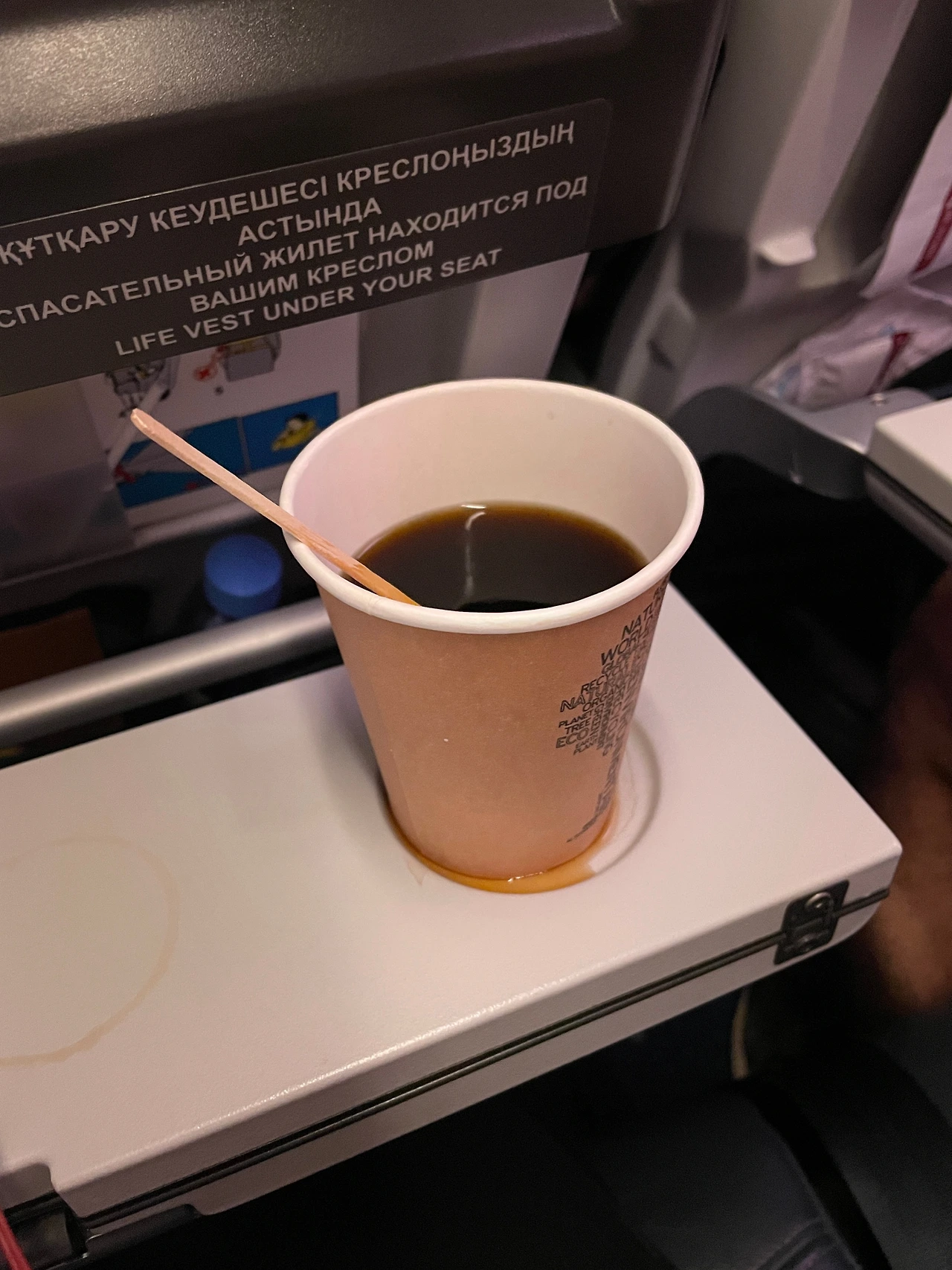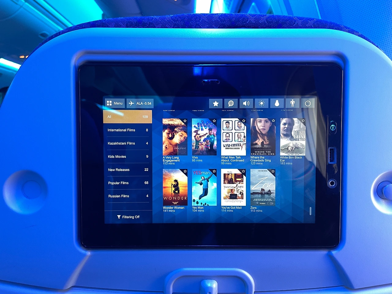 그리고 지연으로 유명한 아스 타나답게 10시 25분 보딩이라더니 25분 되니까 이따 안내해 줄테니 줄 서있지 말라고 했다ㅋㅋㅋ 10시 50분에 탑승 시작했으니 지연이라고 하기도 수줍은 수준. 3년 전에 에어 아스타나를 탔을 때도 1시간 지연됐었다. 이번엔 11시 40분쯤에 비행기가 떴으니까 30분 정도 지연된 셈이다.