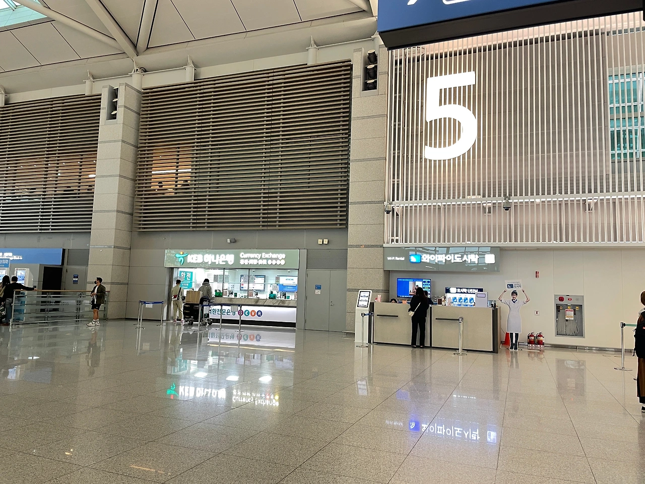 1층 입국장 환전소: 2번, 5번 출입구 부근