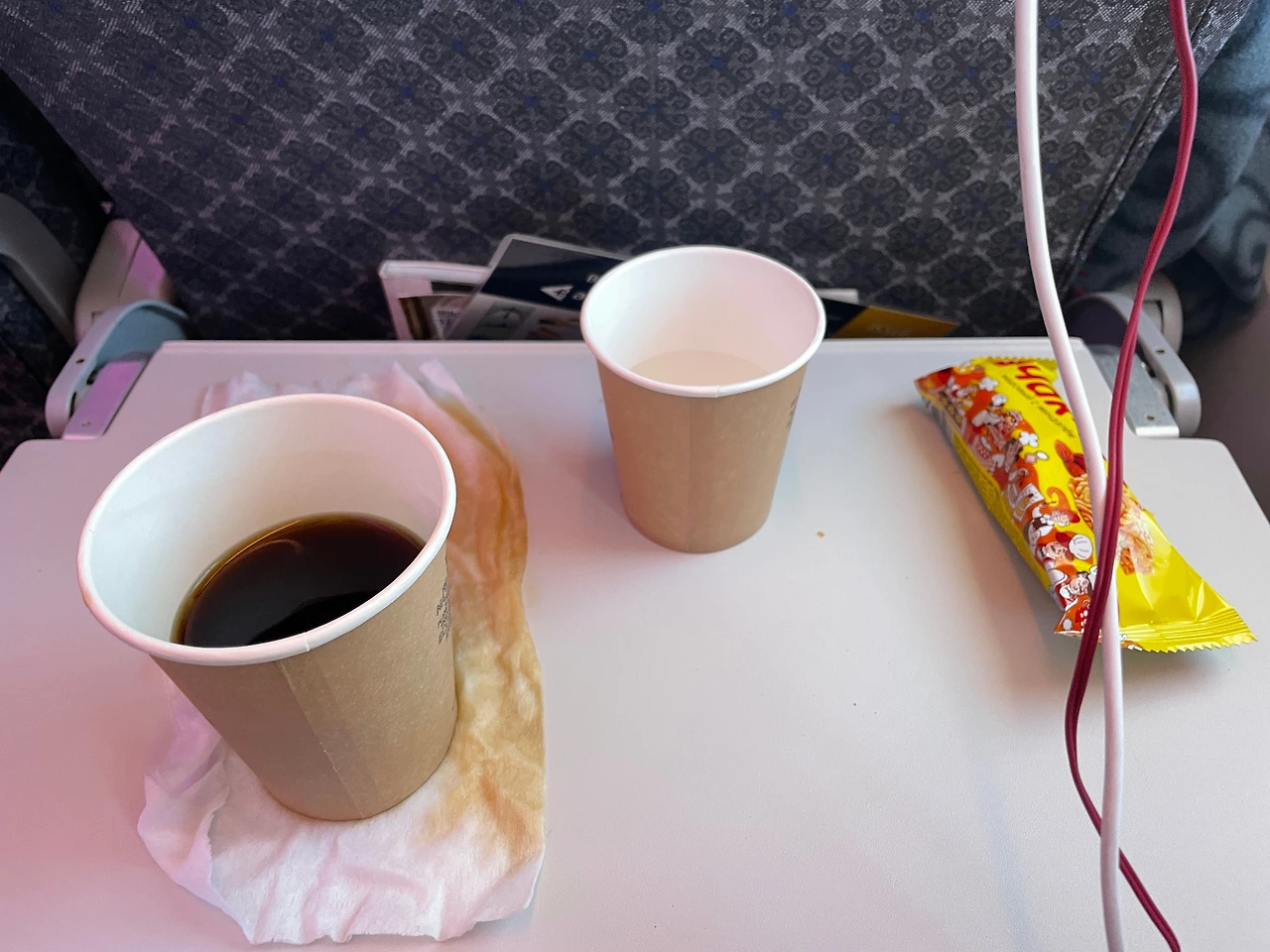 당연히 내 생체 시간은 저녁 8시이기 때문에 배고프고 커피도 마시고 싶었지만 밤에 잘 자고 싶고 기내식 또 먹어야 하여서 자판기에서 물만 구매하고 아까 기내식에서 남겨두었던 에너지 바를 먹었다. 자판기 어떻게 쓰는지 몰라서 자판기 물건 채우러 온 아저씨가 도와주심.