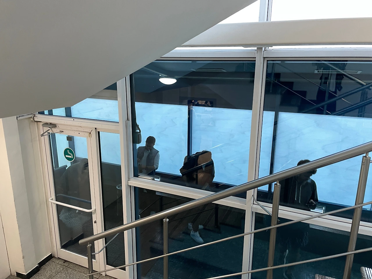 2층 올라가는 길에 흡연장 있고요. 2층 올라가면 작은 면세점이랑 카페, 자판기 등등 면세구역이 있다. 스타벅스도 있다!