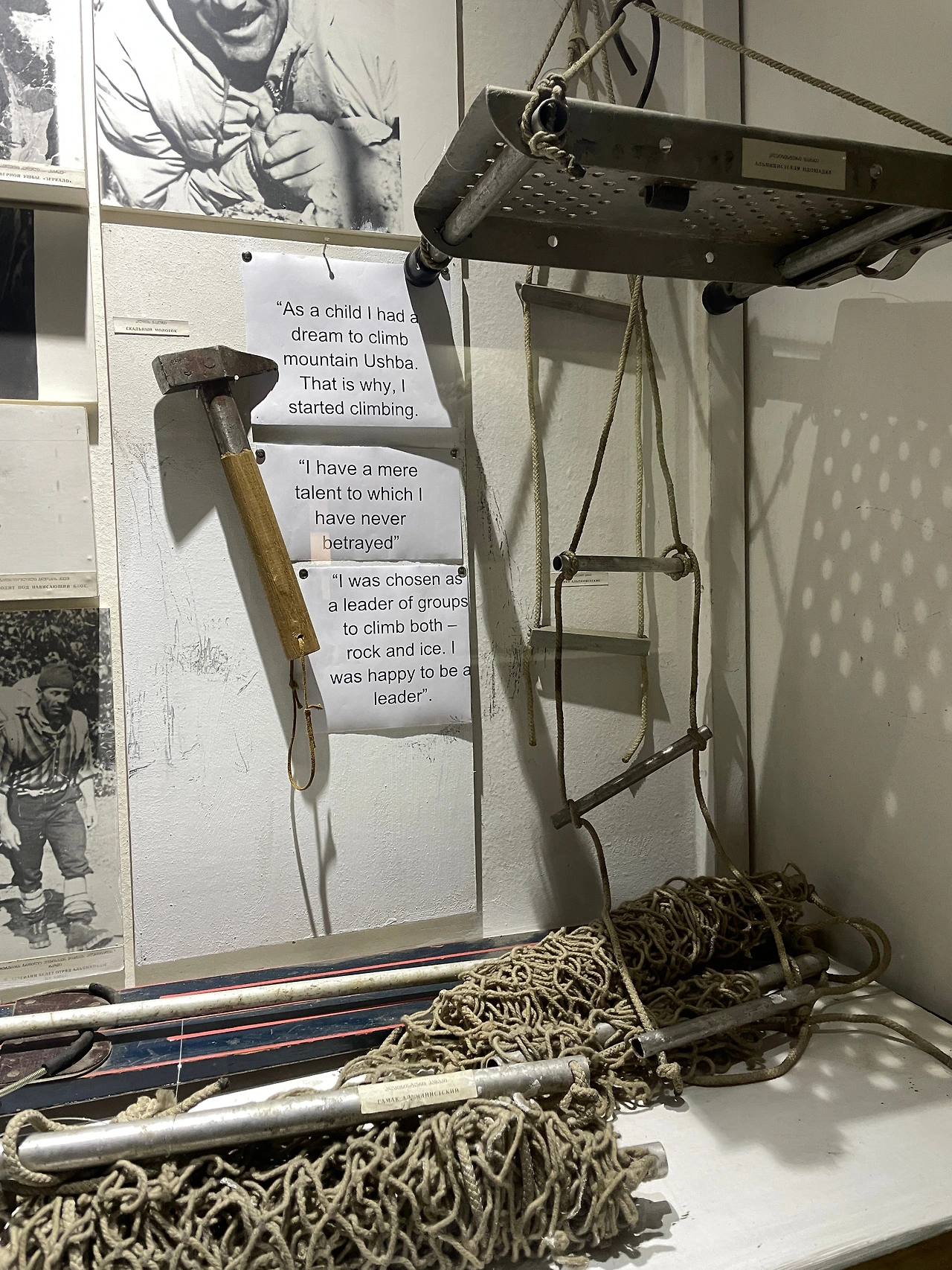이 집주인은 1960년대에 이미 산을 이렇게나 올랐다고.. 어릴 땐 박물관 가면 흠 어쩔티비 0_0 이런 느낌으로 봤는데 나이 먹으니 그 가치를 알게 된다. 그 시절에 이런 열악한 도구를 이용해서 이 험준한 산을 넘나들었단 게 너무 경이로웠다.