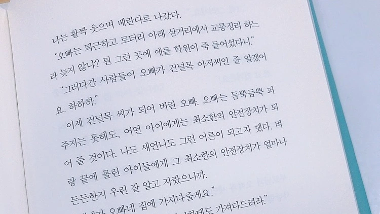 이야기 중 오 작가는 걱정 어린 어머니의 참견에 "가슴에 콱 박힌 이야기를 꺼내지 않고, 다른 걸 쓰려니까 잘 안되더라고요."라고 말한다. 어떤 해묵은 감정들은 정말로 가슴에 콱 박혀서 몇십 년이 지나도 사라지지 않는다. 2년간의 기억이 징글징글하게도 오명랑과 그의 가족에게 오래도록 남았던 것처럼 말이다. 제때 흘리지 못한 눈물은 마음속에 그대로 남는다. 그대로 남기만 하면 다행이지 운이 나쁘면 예상치 못한 평범한 날에 파도가 되어 나를 잠식시키기도 한다. 어쨌거나 용기에는 늦음이 없어 따뜻한 사랑을 나누어준 건널목 씨 이야기가 세상에 퍼졌다.