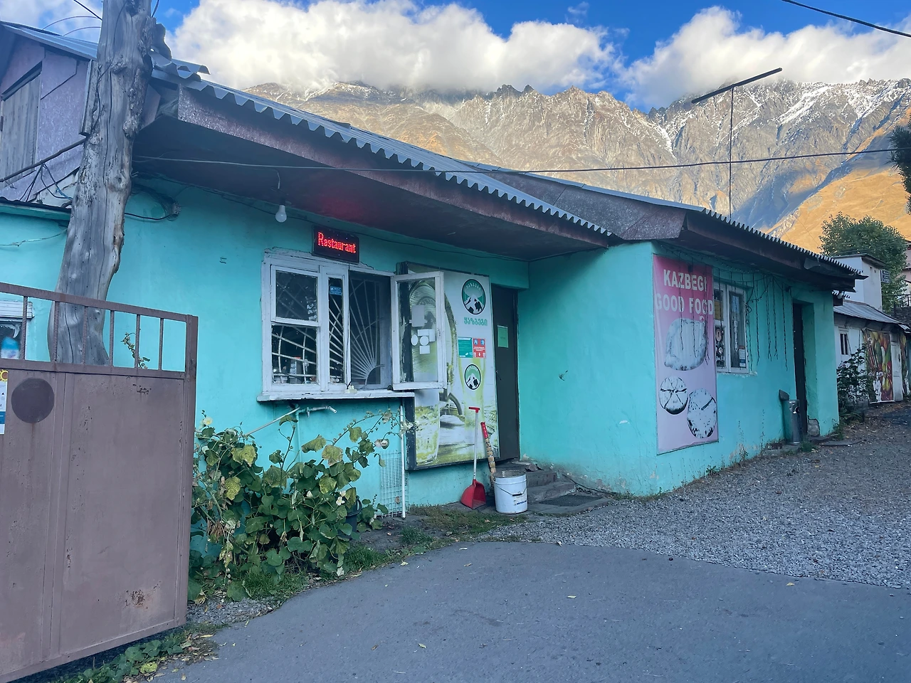 근데 카즈베기는 정말.. 메스티아랑 비교할 수 없이 무서웠다. 메스티아는 작은 시골 동네 느낌인데 여기는 약간 커다랗고 폐가가 많은 시골 느낌이었다. 폐가는 아니겠지만 사람들도 없고 너무 고요하고 가로등도 어둡다.
