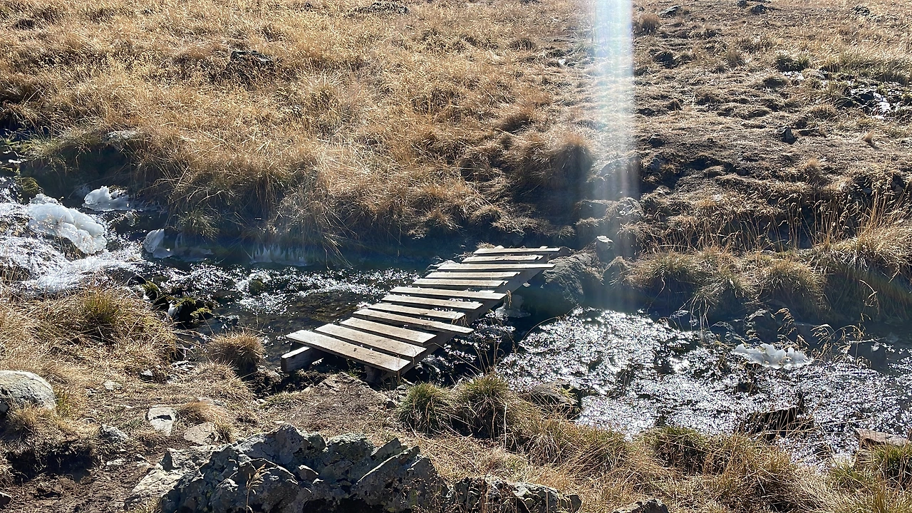 다시 길을 찾아서 호수 가는 길. 개울을 건너야 해서 돌 밟고 건너다가 맵스미 보니까 길이 있어서 맵스미 따라오니까 이런 다리가 있었다. 맵스미는 이 다리가 있는 걸 대체 어떻게 안 거지.
