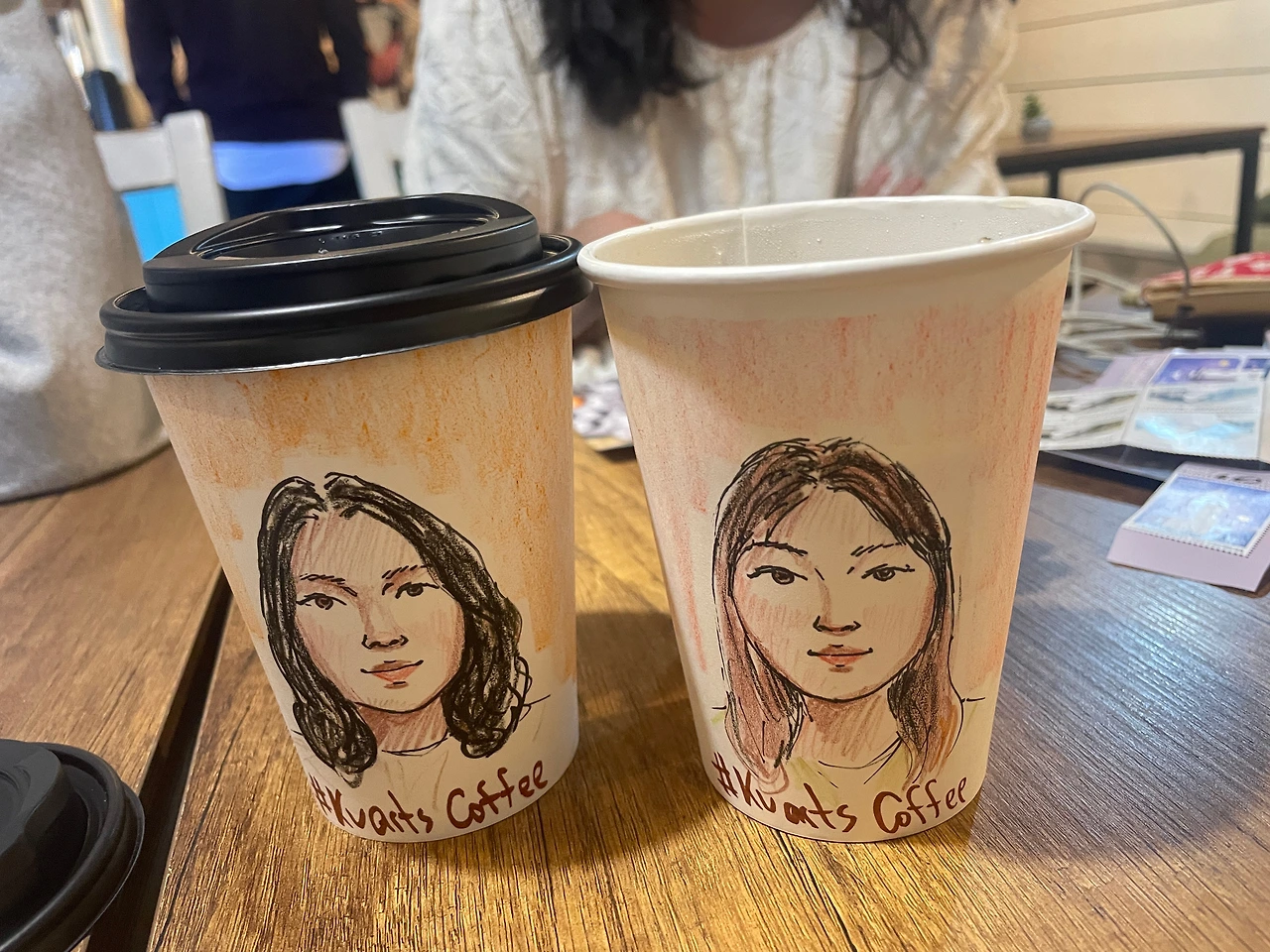 잉잉이랑 나랑 둘 다 초상화를 그렸는데 머리 빼면 똑같은 거 아닌가요ㅋㅋㅋㅋ 그래도 그림 그려주는 친구가 레이시스트는 아닌 거 같았다..^^ 그리고 초상화나 캐리커쳐 이런 거 한 번도 안 그려봐서 그림 그려줄 때 앞에서 빤히 눈 마주치고 있는 게 참으로 쑥스러운 일이란 것도 처음 알게 됨. 그림 그려주는 친구 눈이 정말 예뻐서 빨려 들어가는 줄 알았다.