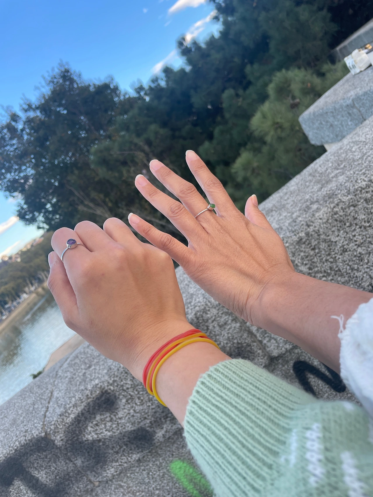 그런 생각을 하면서 걸어가다가 다리 위 노점에서 기념품이랑 액세서리 파는 걸 구경하게 됐다. 잉잉이랑도 오늘이면 헤어질 텐데 선물해주고 싶어서 고민하던 참이라 잉잉이가 보던 반지로 우정 반지를 하자고 했다. 1개당 8라린데 2개 해서 15라리에 해주심. 노점 아저씨한테 100라리짜리 밖에 없는데 괜찮냐고 하니까 지나가던 현지인(아는 사인지 아닌지 모르겠음ㅋㅋㅋ)한테 조지아어로 말하더니 돈을 바꾸셔서 잔돈 챙겨주시는 게 조지안스럽고 웃겼다. 잉잉이가 "나는 너한테 해줄 게 없는데"라고 해서 말레이시아 돌아가면 카메라로 찍은 사진 보내주라고 했는데 잉잉쓰는 거짓말쟁이였음ㅜ