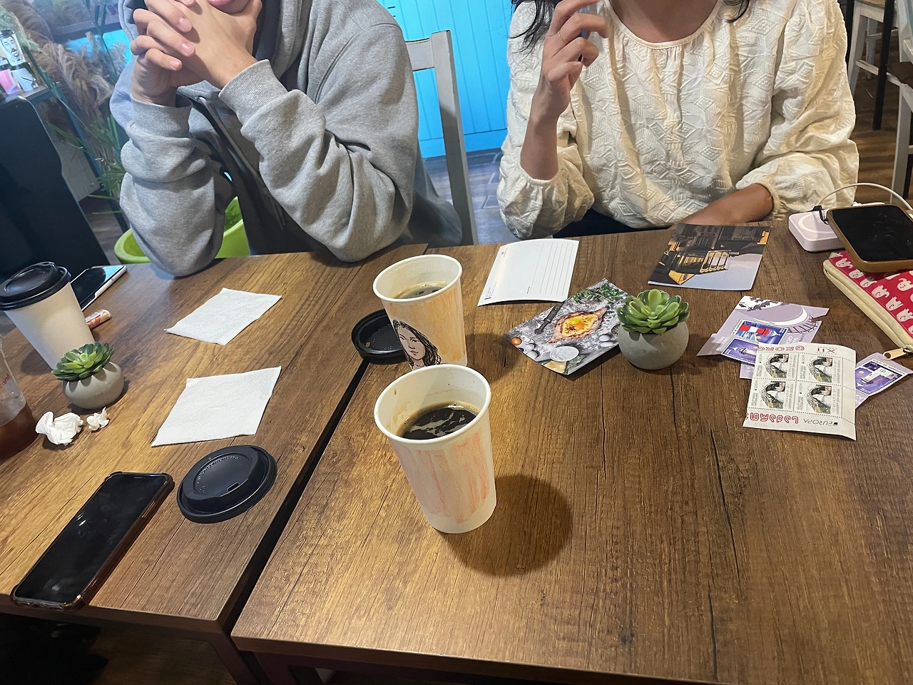잉잉이는 오늘 저녁 기차를 타고 아르메니아로 넘어가는 일정이라 같이 보내는 마지막 시간이었다. 잉잉이가 친구들한테 편지 쓰는 동안 카페 휴지에다가 짧게 잉잉쓰에게 편지 써줬음. 영어로 편지도 쓰고 많이 컸다.. 장난 반 진담 반으로 쓴 편지지만 잉잉이랑 너무 재밌게 놀아서 곧 헤어져야 된단 사실이 안 믿겼다.