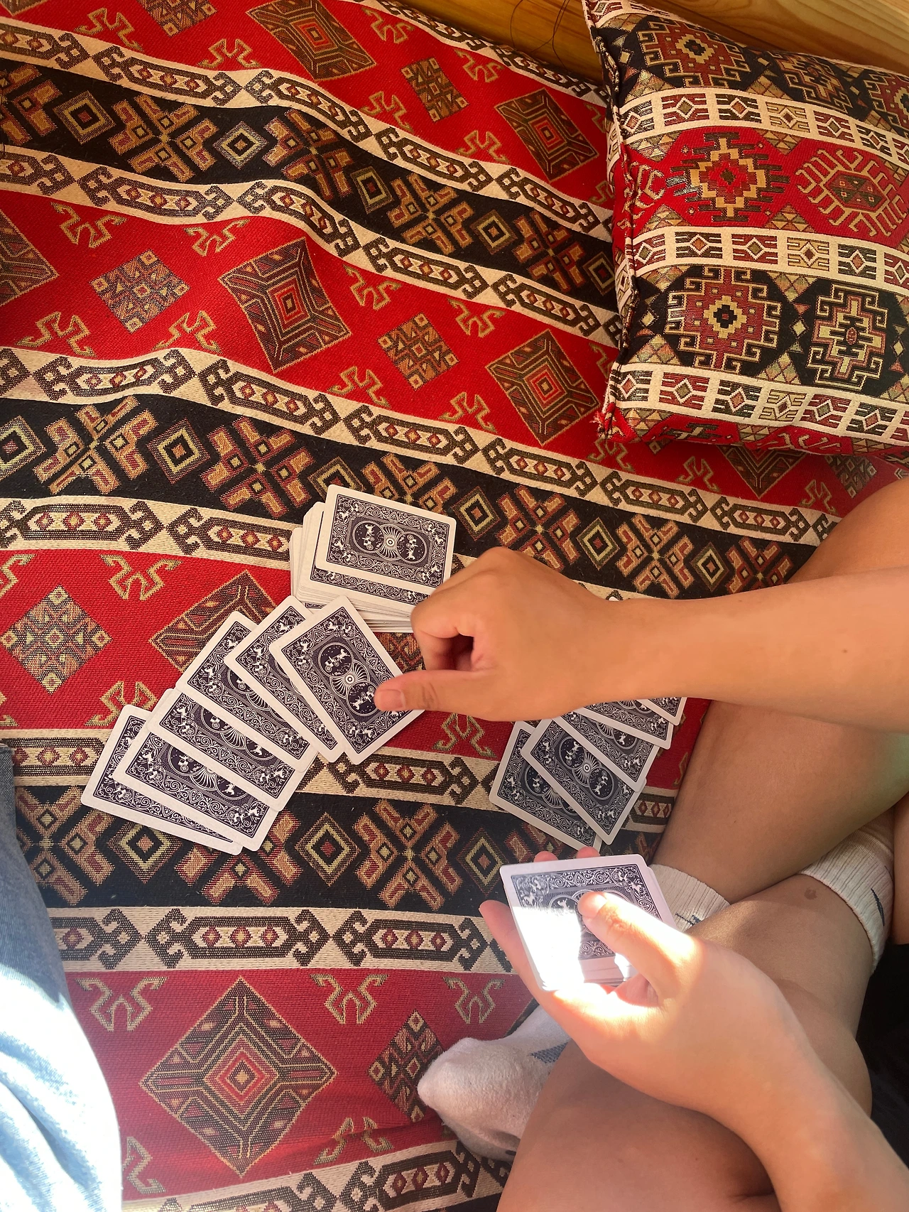 씻고 나갈 준비 다했는데 갑자기 카드 게임함. 사실상 동률인데 마지막 판을 지니까 아주 루저가 된 기분이었다. 다음에는 안 봐줘야지..^^