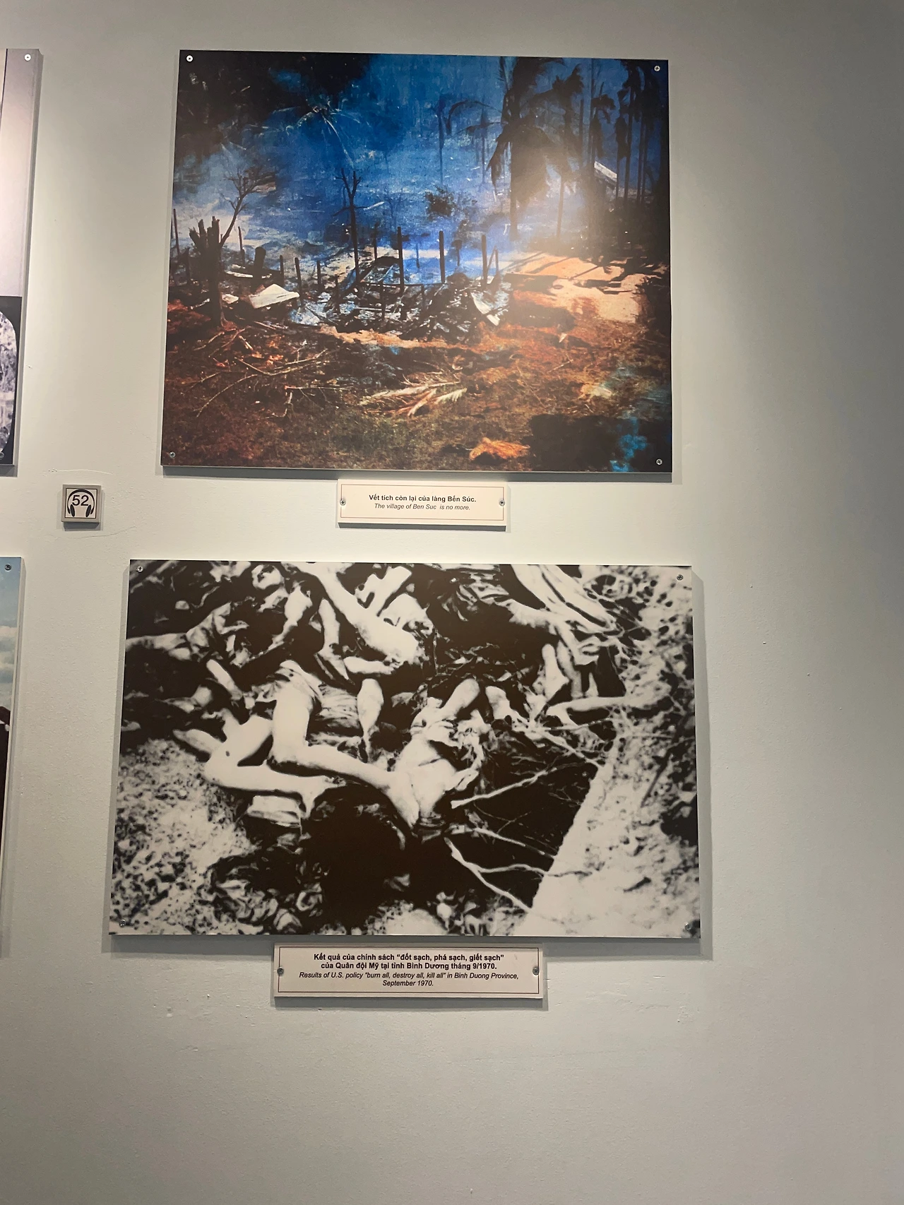 기형으로 태어난 한 아이가 아주 정교한 작업을 하는 비디오도 볼 수 있고 피해자가 오바마 당시 대통령에게 쓴 편지도 있다. 전쟁은 끝났어도 우리의 고통은 끝나지 않는다는 그 문장이 너무 가슴 아프게 다가왔다. 베트남 아이들이 이를 주제로 그린 그림도 한 구역에 같이 전시되어 있다.
