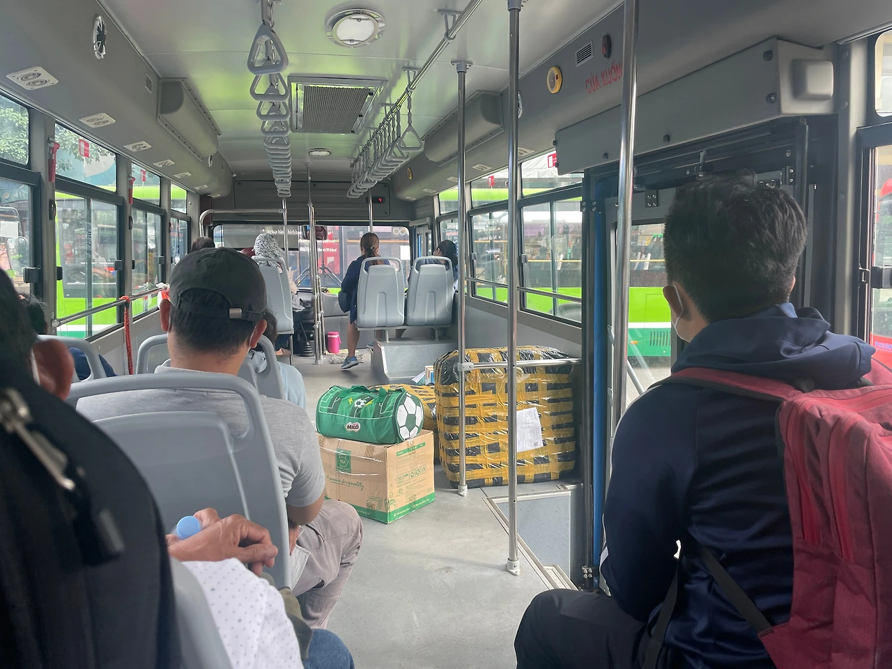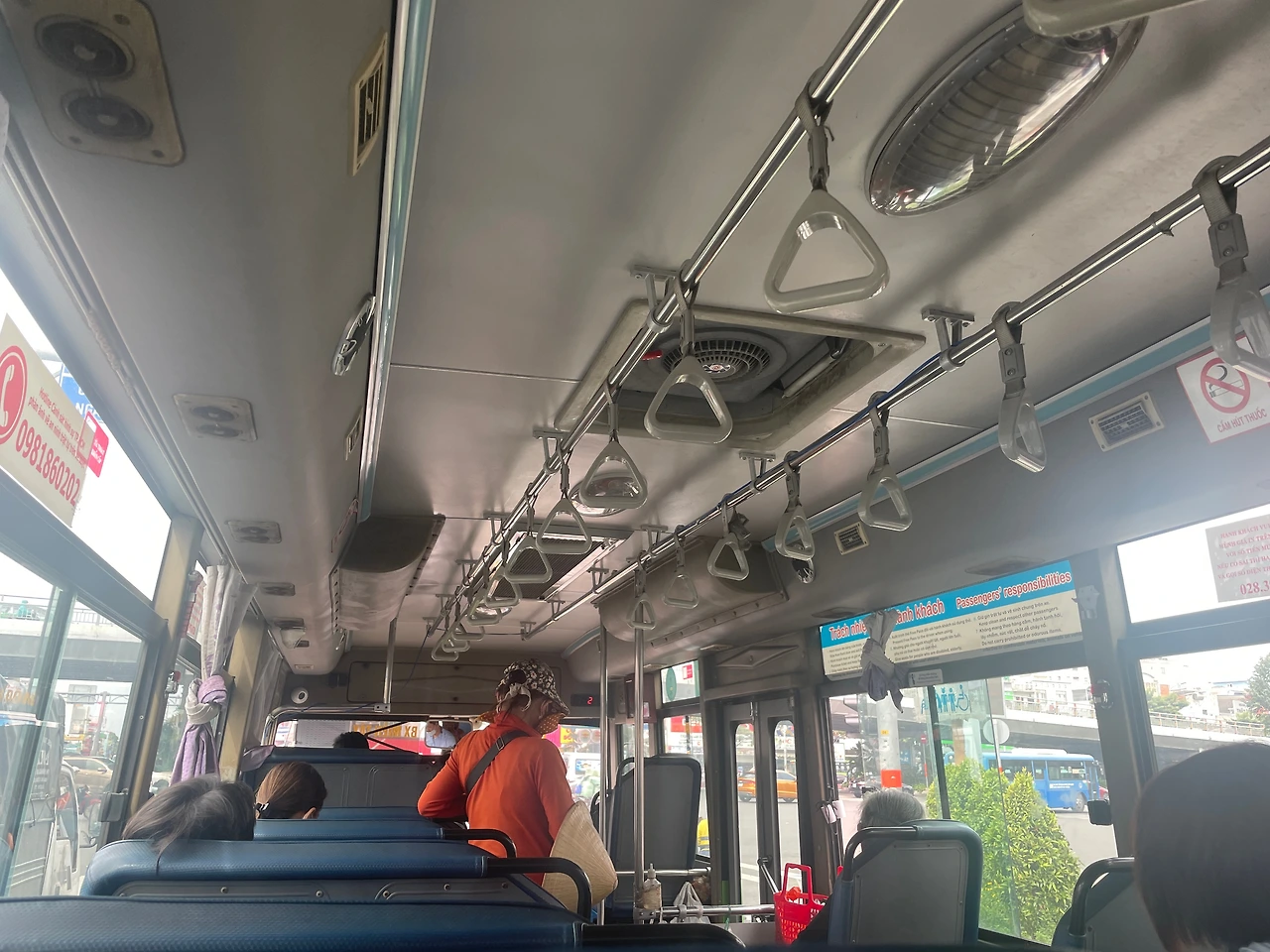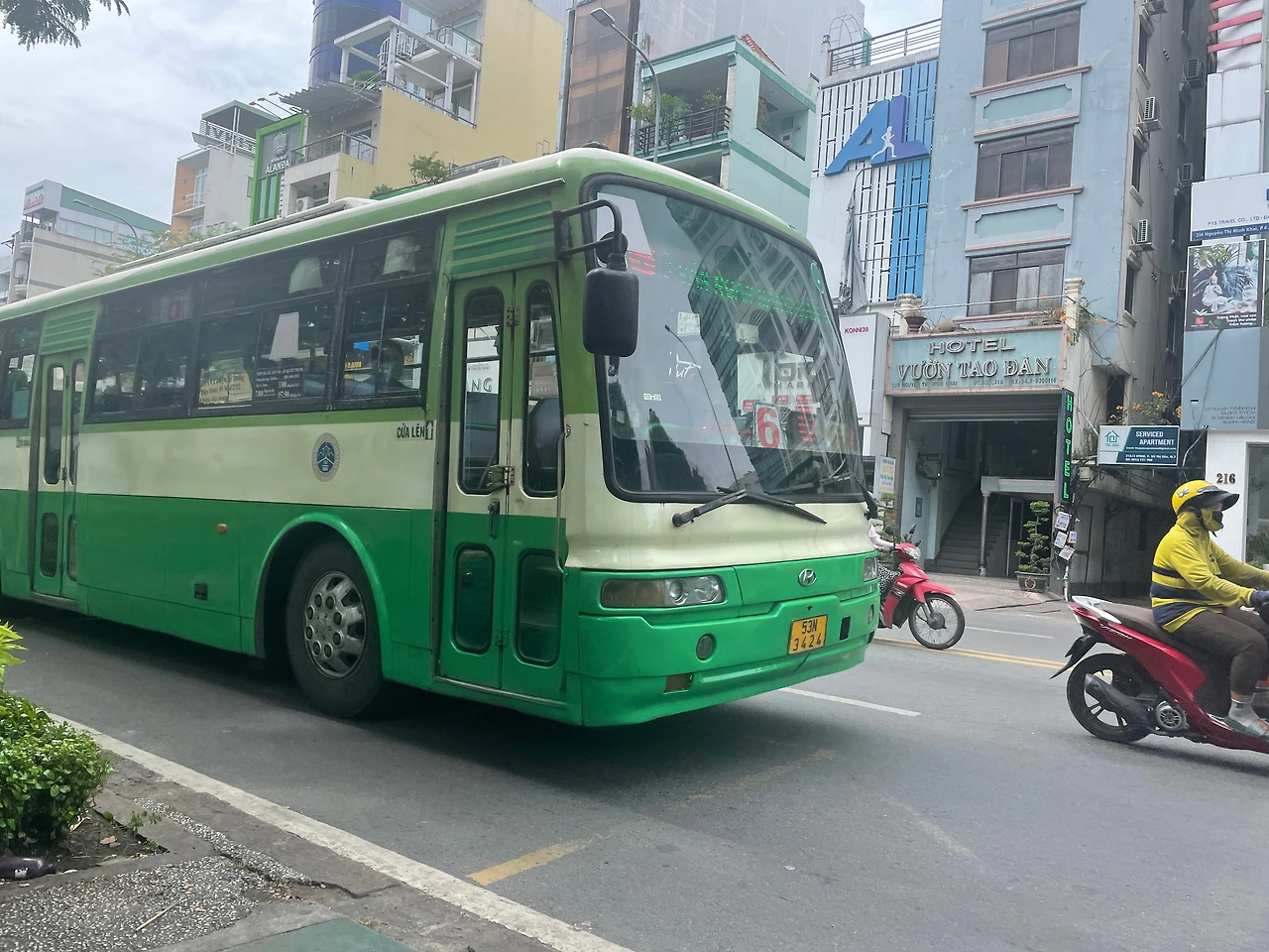 152번 버스 타면 시내로 간다! 도착홈 나와서 오른쪽으로 가면 버스 정류장 있음. 새벽이라 나랑 아저씨 한 명 태우고 에어컨 쐬면서 조용히 갔다. 앉아있으면 와서 돈 거둬가고 표를 준다. 가는 길에 점점 늘어나는 오토바이를 보면서 진짜 베트남에 왔구나 실감하게 되었다.
