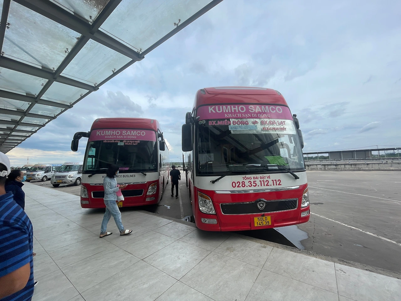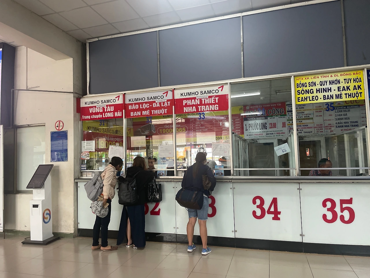 무이네 가는 버스 터미널, 금호 삼코 버스는 31-33번으로 가면 된다. 4시 버스라 표 바꾸고 카페에서 시간 죽이려고 했는데 “2시 버스로 바꿔줄까?” 이래서 바로 오케이!