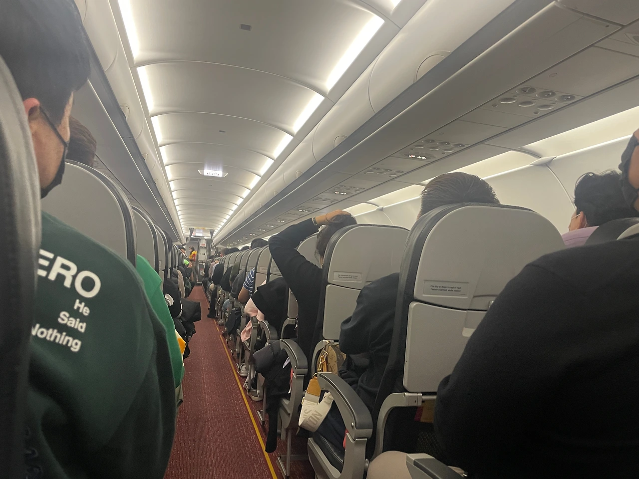 워낙 지연으로 유명해서 지연될 거라고 생각하고 여유 부리려고 했는데 제때 보딩 했다. 근데 비행기를 타고나서 55분 지연됨. 방송으로 승객 한 명이 컨택이 안돼서 지연되고 있다고 하던데 사실일까요.. 비엣젯.. 그렇게 친절한 항공사입니까..? 하여튼 8:55 출발이었는데 9:50에 비행기가 떴다.
