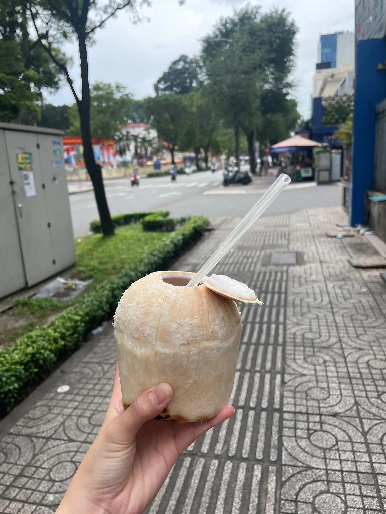 박물관 관람을 끝내고 버스를 타러 가는 길에 코코넛 아저씨가 말을 걸면서 따라와서 스몰토크 좀 나누다가 신기한 거 보여준다고 해서 ㅇㅇ하니까 냅다 코코넛을 잘라버렸다(?) 그래서 “????”하니까 5만 동이라고 맛있다길래 목도 마른 참이라 주섬주섬 지갑 꺼내면서 “근데 5만 동 너무 비싼데~”하고 던져봤다. “근데 이미 뚜껑 열었잖아~”하며 배 째라 식으로 나와서 빈또가 상해버린 나.. 그래서 지갑 넣는 척하면서 ”내가 열라고 한 거 아니잖아ㅡㅡ ”하니까 안 사고 갈 거 같았는지 3만 동에 해준다고 해서 먹었다ㅋㅋㅋㅋ