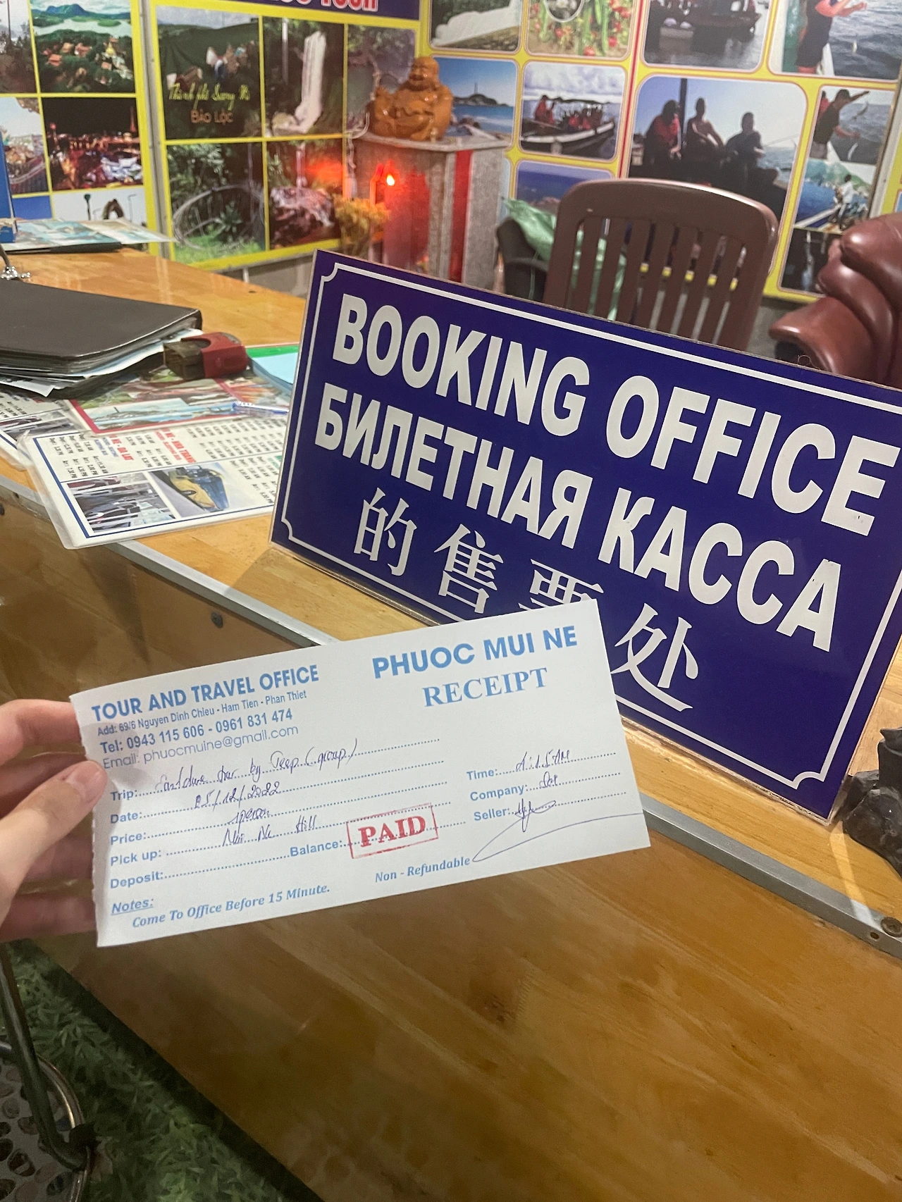 돌아오는 길에 단골 식당 들려서 내일 아침 선라이즈 투어 예약을 했다. 가격은 10만 동!