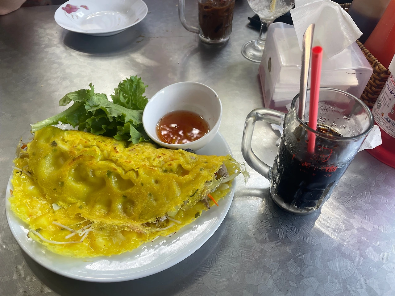 그리고 새로운 식당에서 반쎄오를 먹었다! 반쎄오 자체를 처음 먹어봐서 이 집이 맛있는지 그냥 그게 맛있는 음식인 건지는 모르겠지만 엄청 맛있었다.