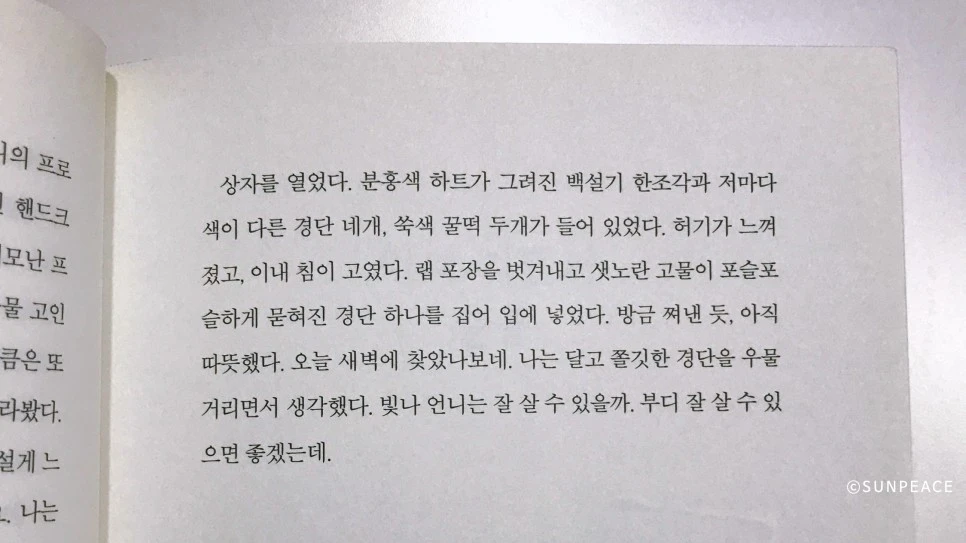 결국 빛나 언니의 답례떡에서 새벽녘의 온기를 느끼는 주인공은 빛나 언니가 잘 살기를 바란다.