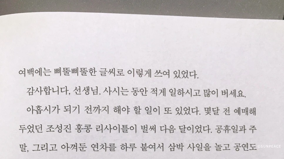 그럼 모두들 열심히 노동하고 그에 맞는 대가를 받으시길, 가끔은 좋은 기억 조각을 꺼내 웃으시길,