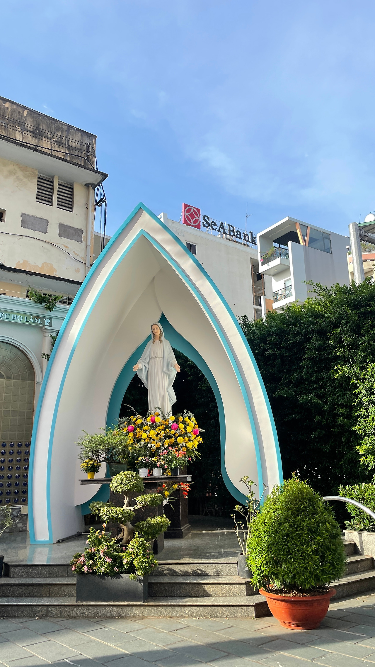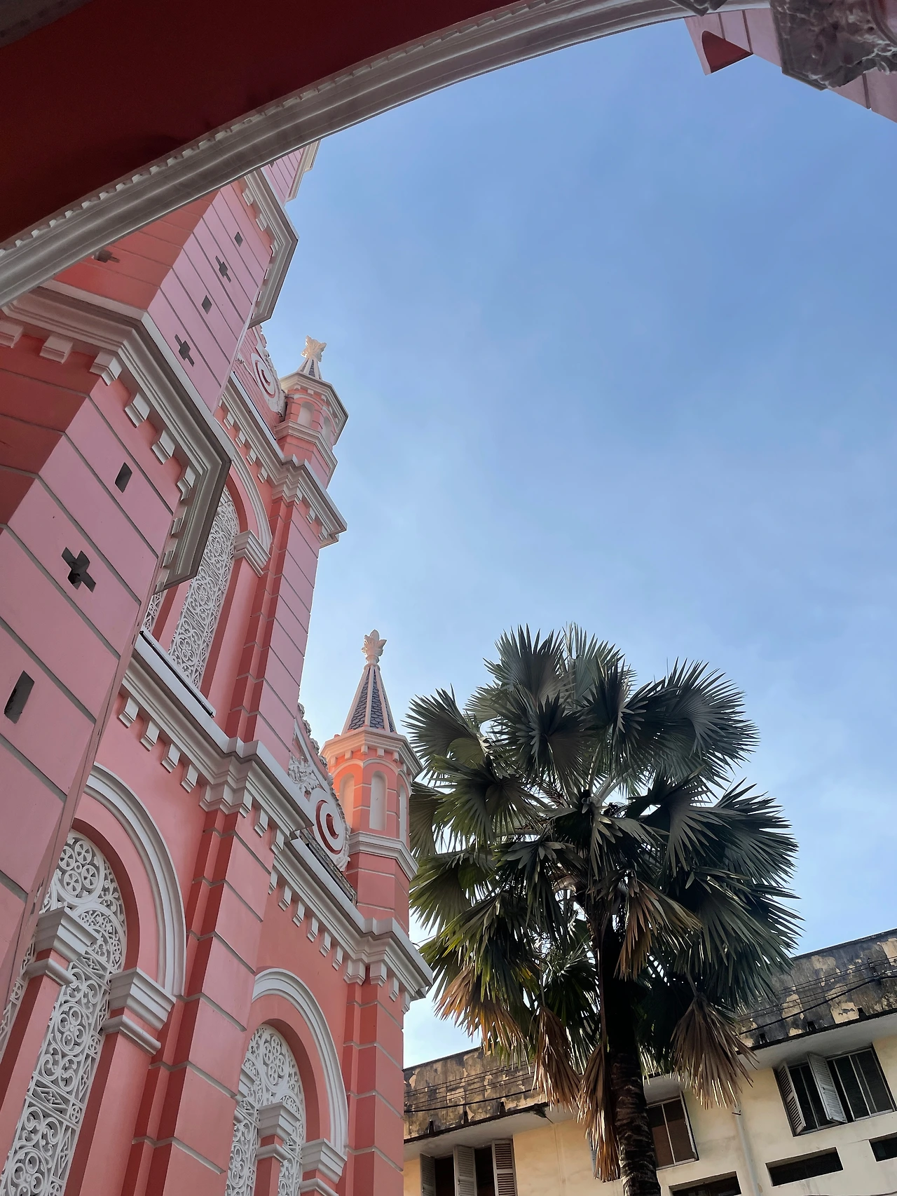 ATM 근처에 핑크 성당이라고 불리는 떤딘 성당이 있어서 구경하러 갔다. 성당 안에는 아마 못 들어가는 거 같았다. 사진 찍으려는데 베트남 인플루언서 같은 친구가 촬영 중이라 그늘에 앉아서 기다렸음.. 그래도 그늘에 있으면 더워 죽을 거 같진 않은 날씨.
