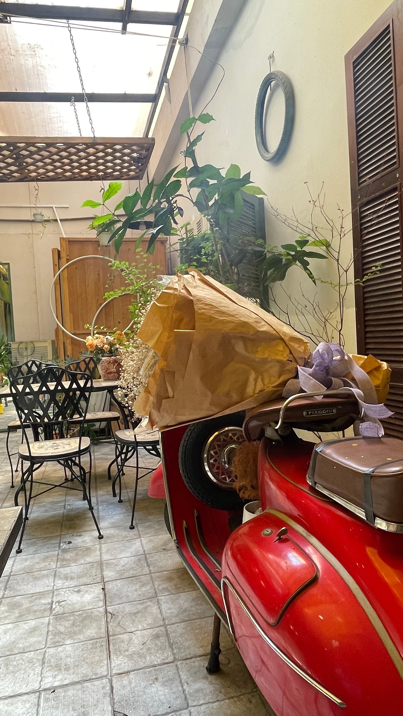 근데 왜 배가 고프죠..? 햄버거가 작긴 했다. 우선 오토바이가 너무 많아서 골목으로 피신했는데 예쁜 카페들도 있고 식당도 하나 있어서 그냥 들어가 봤다.