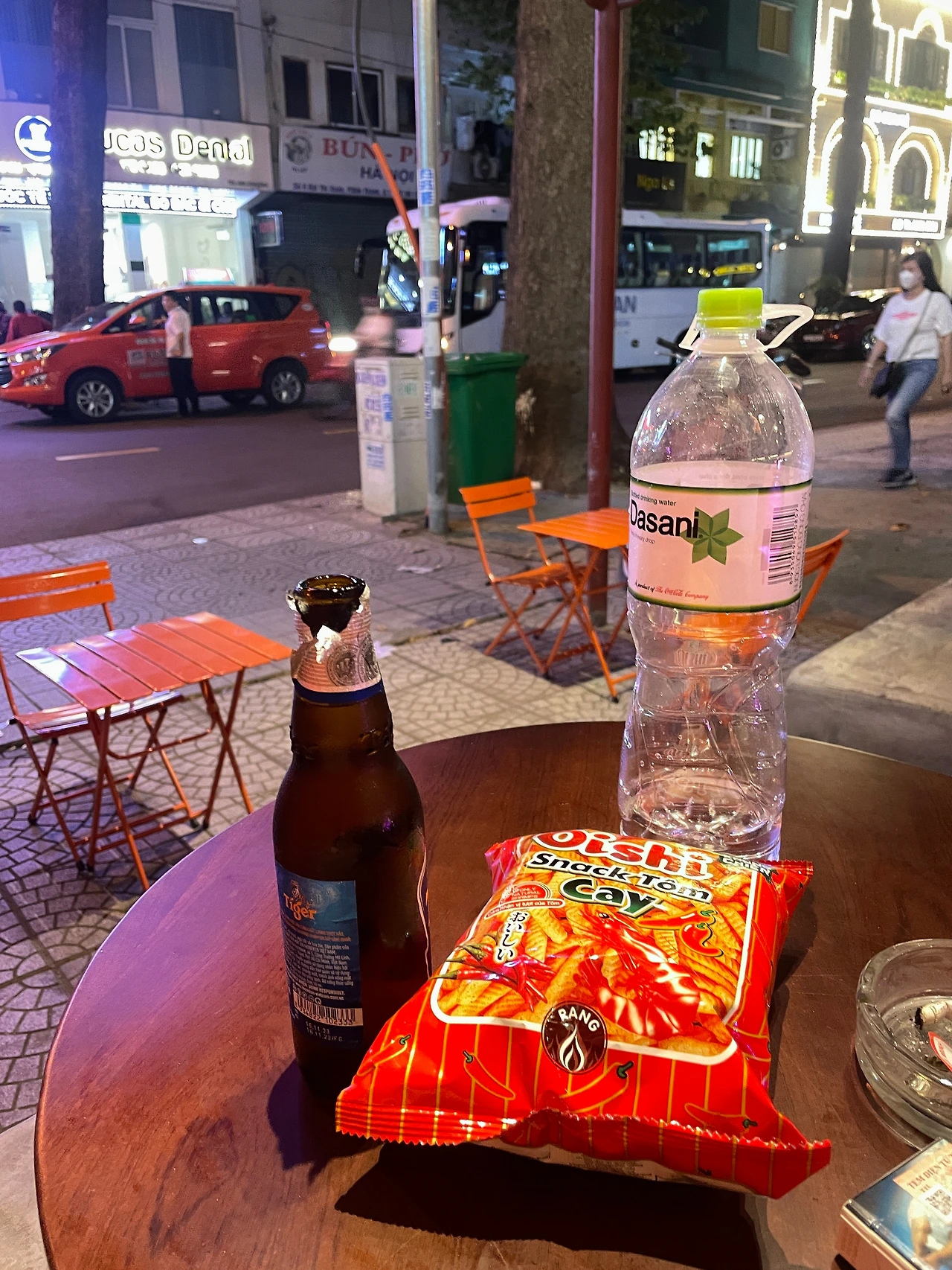 샤워하고 나왔는데 땀 주룩주룩.. 오늘은 바가 열린 시간이라 바깥 맥주를 먹기 좀 그래서 호스텔 바에서 타이거를 시켰다! 어제 안 먹은 새우깡이랑 먹었다.