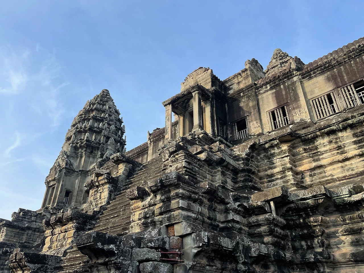 서서히 밝아지면서 주변이 보이고 내가 느낀 것보다 사람이 더 많았구나 알게 됐다. 6시 10분에 다시 모여서 이동, 앙코르 와트 타워 옆이 보이는 곳에서 다시 한번 붉은 하늘이 푸른 하늘로 바뀌는 것을 보았다. 다시 봐도 멋져.