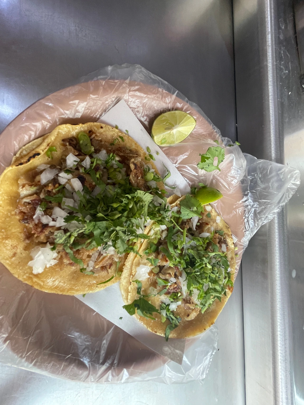옆에 현지인 아저씨들 2명의 곱창타코가 먼저 나왔는데 라임을 짜고 양파절임을 올리고 소스를 뿌려드셨다. 내 것도 곧 나와서 나도 라임을 짜고 소스를 뿌렸다.