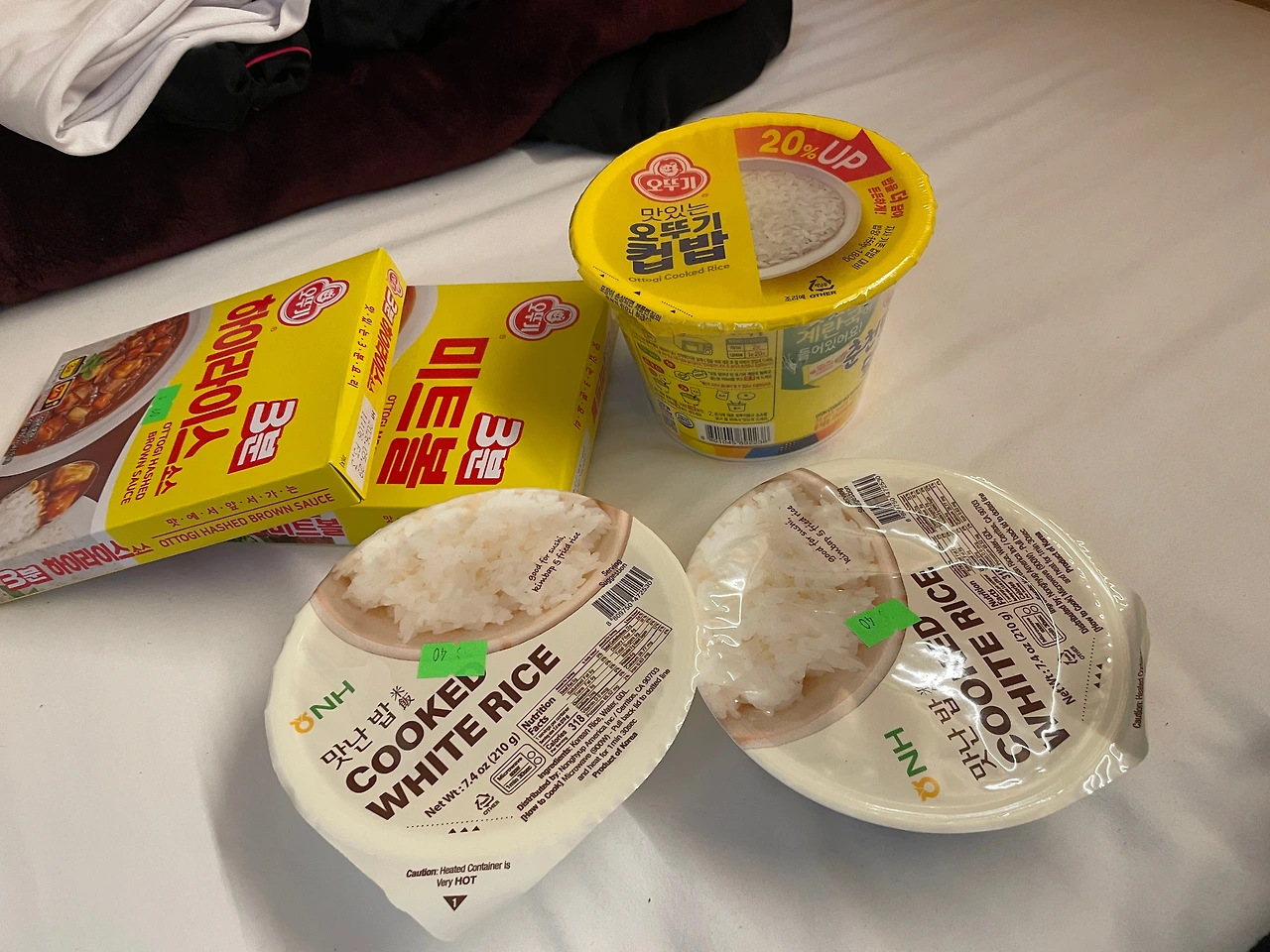 우리 식품에 가서 햇반 2개랑 컵밥 한 개, 3분 하이라이스, 3분 미트볼 한 개를 샀다. 총 310 페소면 저렴한 편은 아니다. 이럴 줄 알았으면 한국에서 사 올 걸 그랬다. 사실 한식이 엄청 먹고 싶다기보다(왜냐면 3일밖에 안됨) 멕시코 시티에서 벗어나 다른 지역으로 가면 이런 걸 못 사게 될까 봐 걱정되어 서브를 준비해두고 싶었다.