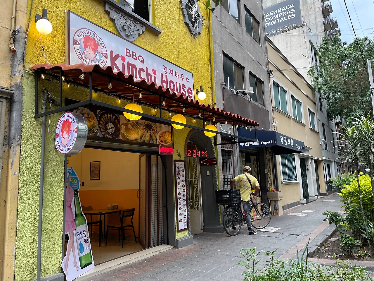 사실 하나의 또 목적은 대체 멕시코 시티에는 미용실이 어디 있는지를 물어볼 요량이었는데 여자 사장님은 내가 물건을 구매하기 전에 사라져 버려서 아쉬워하면서 나온 참. 나와서 옆가게로 시선을 돌려보니 옆에도 한식당이 있었다. 사실 컵밥으로 끼니를 때울 생각이었는데 본 이상 또 지나치기가 쉽지 않았다.