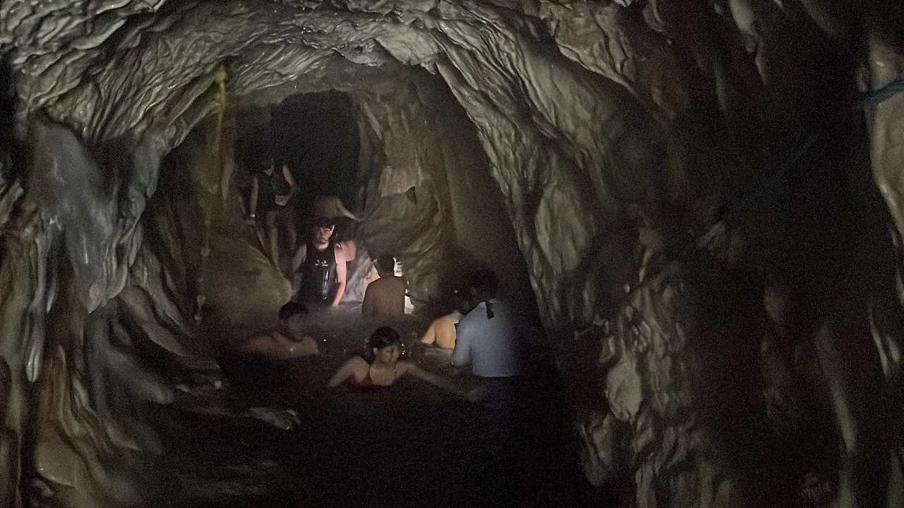후레시를 켜고 들어가다 보니 아까보다는 숨이 막히는 게 덜하다. 아마도 포지타스까지 갔다 왔다 하면서 갈증이 났던 게 컸던 듯. 근데 아까 왔던 곳까지 오고 보니 바로 하나만 넘어가면 동굴 끝이었다. 동굴 끝에서는 사람들이 사진 찍고 있었다. 나는 그냥 그 끝 넘어가는 언덕(?)에 앉아서 물 좀 맞다가 입구 쪽에서 쉬다가 다시 들어가서 따뜻한 물 맞기를 반복했다.