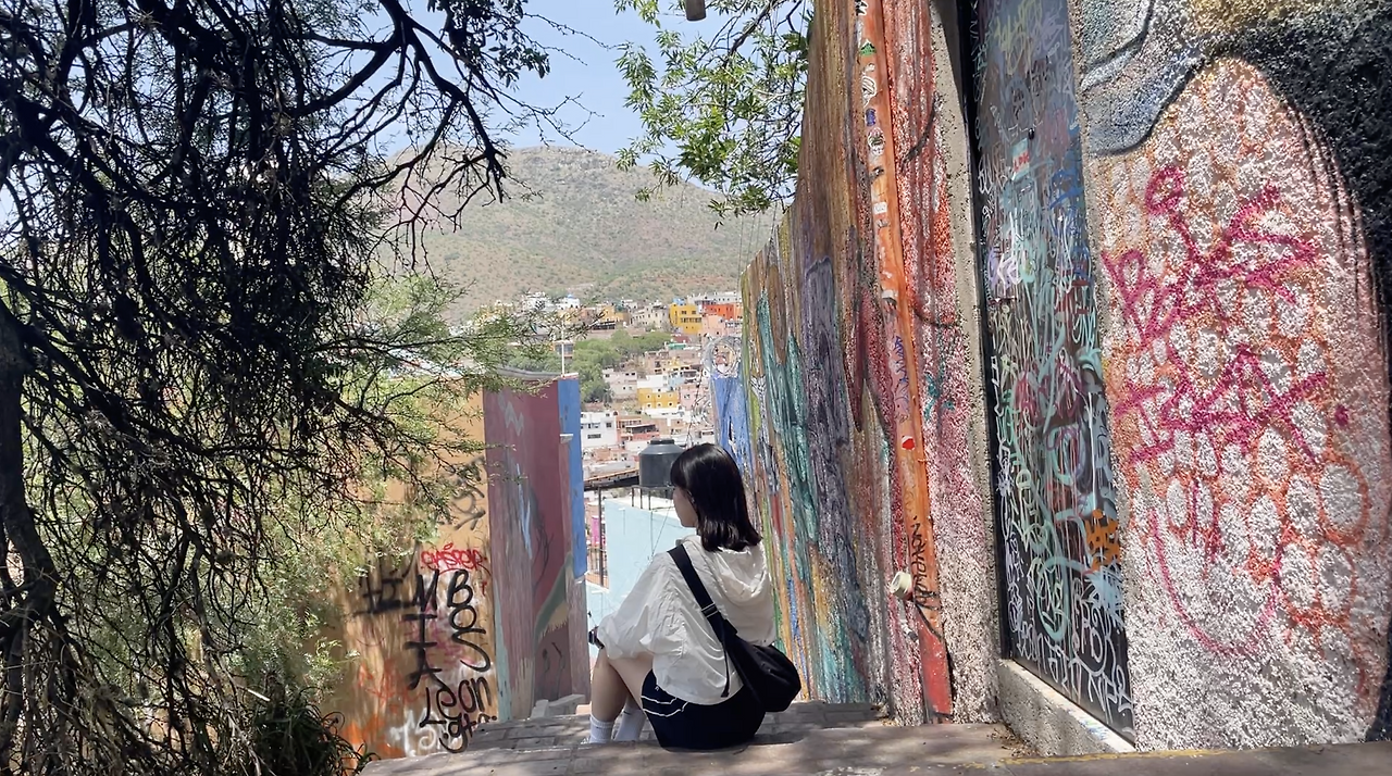 다시 산책을 나섰다. 계획은 삐삘라 전망대에 올라갔다가 전망이 좋은 카페에 갔다가 돌아오는 것이었다. 다시 같은 길을 걸어봐도 정말 예쁜 과나후아토, 근데 삐삘라 전망대 올라가는 길이 생각보다 경사졌다. 이렇게 힘들 일이 아닌데 싶다가도 뒤를 돌면 얼핏 얼핏 보이는 풍경에 다시 올라가게 됐다.