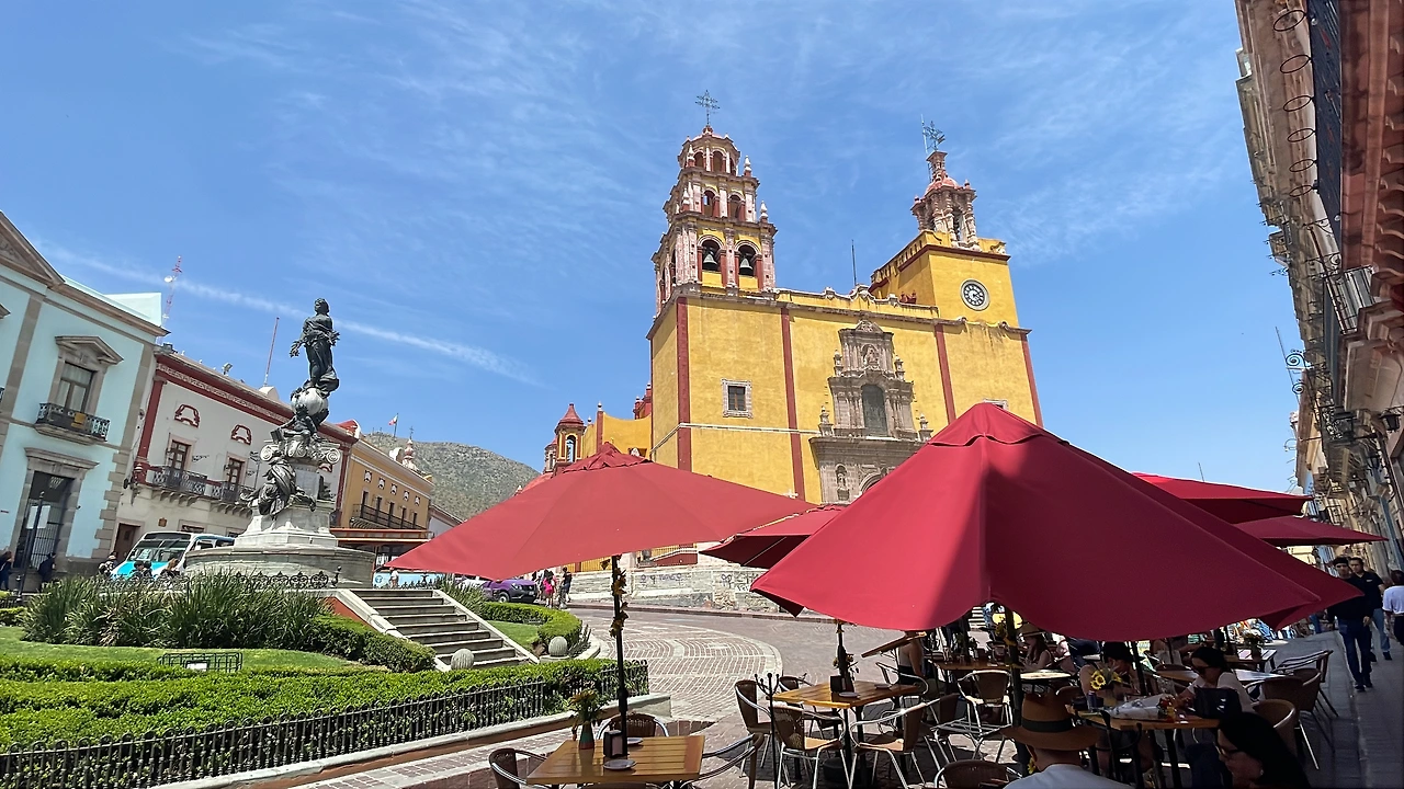 가다 보니 성당도 엄청 예쁜 게 있었다. 성당 앞쪽으로 식당들도 나와있었는데 노래 불러주는 마리아치 팀들이 노래를 불러주고 있었다. 멕시코 시티에는 마리아치들이 있는 거리가 따로 있다는데 과나후아토는 마을 전체에 그런 사람들이 많이 돌아다니고 있었다.