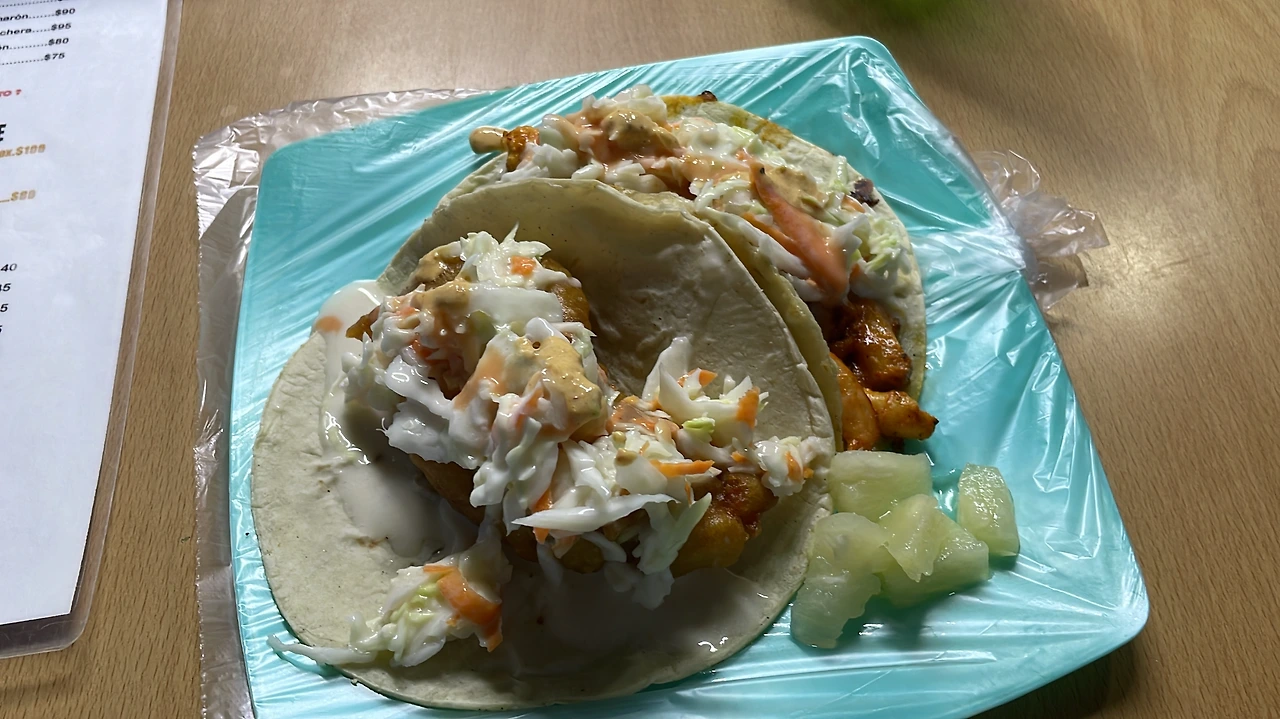 새우타코집도 숙소 바로 앞. 이미 많은 사람들이 있었다. 여기는 타코에 딱 새우튀김만 올려주면 셀프바에서 취향대로 추가해서 먹는 식이었다. 나는 새우튀김 하나랑 그릴새우 하나씩 시켰다. 아저씨가 추천해 주신 대로 양배추랑 살사, 매운 소스 조금 올려서 먹었다. 근데 매운 소스가 진짜 매웠다.