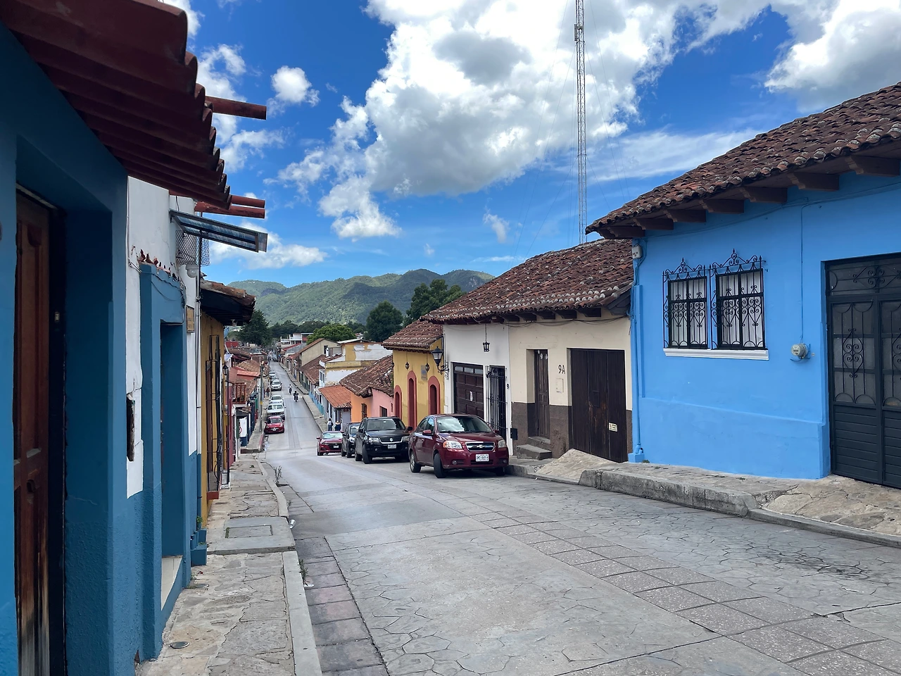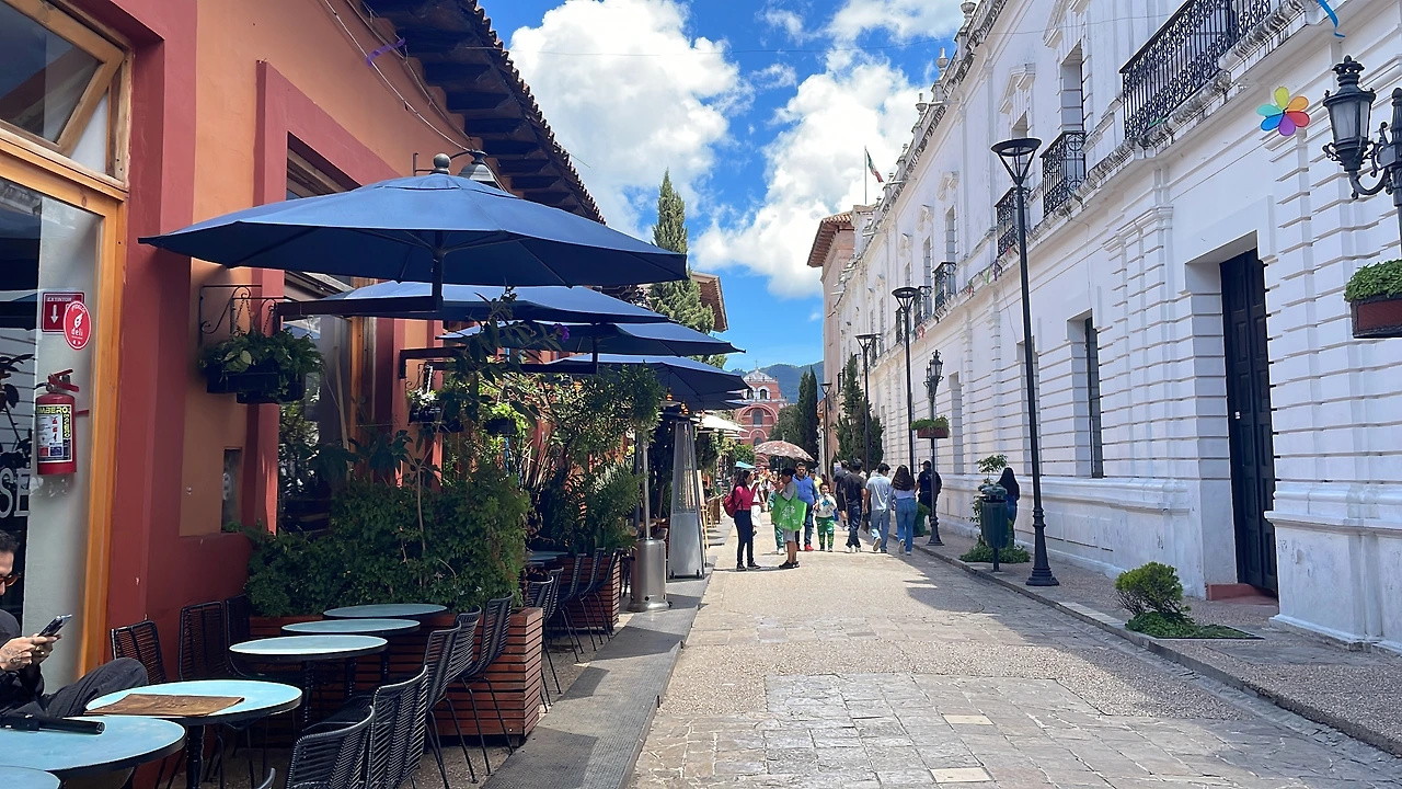 오늘은 카페에서 시간을 좀 보낼 생각으로 카페를 찾아 나서는데 걷다 보니 비가 안 오는 산크리스토발은 정말 좋았다. 이제까지의 멕시코처럼 덥지도 않고 선선하고 비가 그리왔는데 습하지도 않아서 날씨가 딱 좋았다. 눈에 담기는 풍경들도 내가 첫날 본 비 오는 날이랑은 비교가 안 됐다. 가다가 너무 예뻐서 사진을 찍다가 기시감이 들어 보니 첫날 내가 비를 피하던 곳이었다. 날씨에 따라 이렇게 풍경이 달라질 수가!