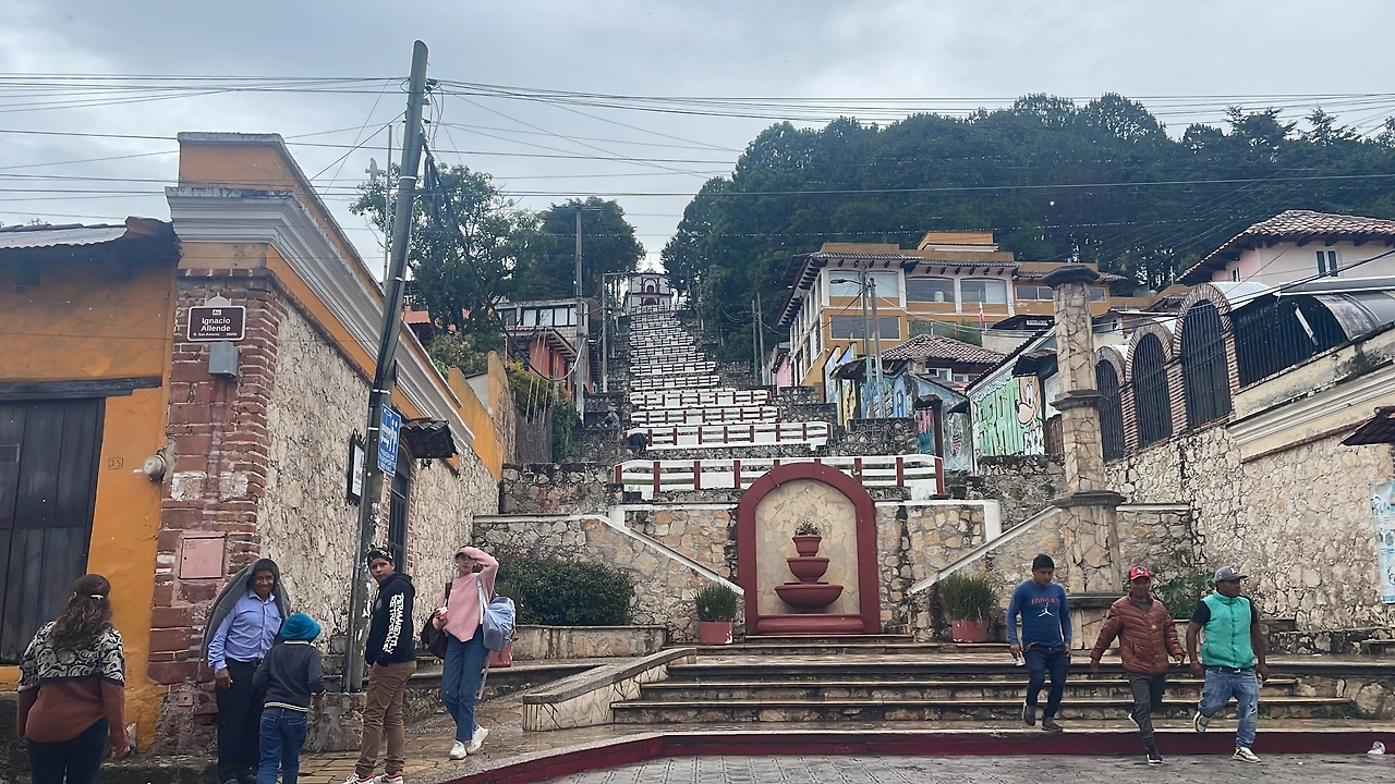 이번 여행에서 아마 여기가 같은 숙소에 머무는 게 가장 길 텐데 그런데도 나는 신크리스토발의 아주 일부만 보고 가는 것 같아서 슬프다. 열심히 계단을 올랐더니 끝에 다다랐다. 여기도 차를 가지고 올 수 있구나, 성당은 문이 닫혀있었다. 멀리 보이는 집들을 보다가 갑자기 우리 숙소 발견!