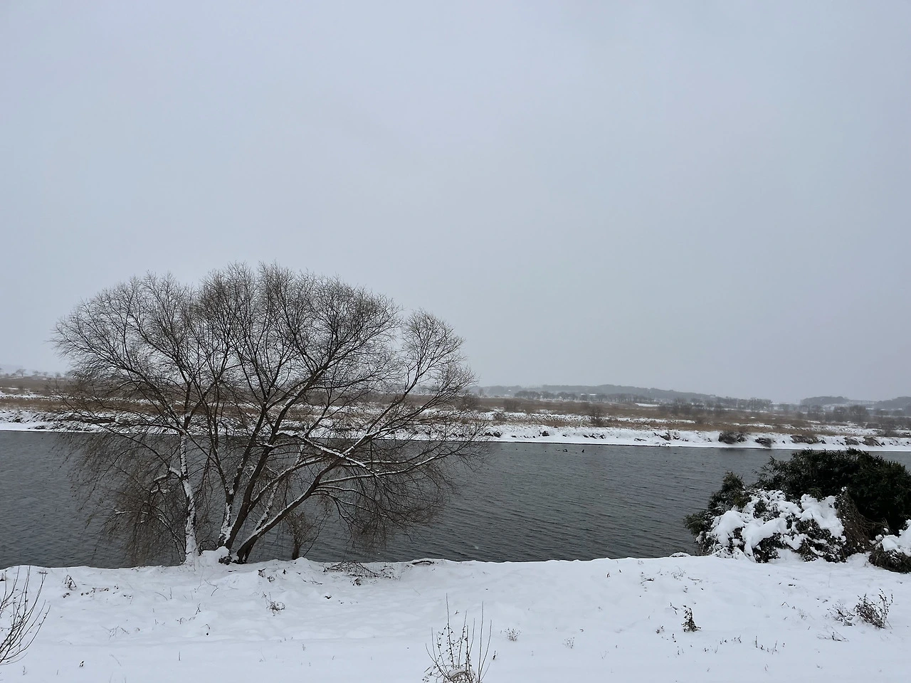나가보니 차가 다니지 않는 길에는 흰 눈이 쌓여 있었고, 찻길에는 거무튀튀한 색으로 변해버린 살얼음이 가득했다. '오늘은 두시간 달리자.' 천천히 산책하는 느낌으로 달렸다. 눈이 쌓인 곳을 피하려 찻길에서 뛰면, 찻길에 늘어진 살얼음이 튀어 신발을 적셨다. 눈이 적당히 쌓인 곳과 살얼음이 적은 적을 요리조리 잘 밟아가며 뛰었다. 3km쯤 뛰었더니 강변이 나왔다. 강변에 잘 정비된 자전거 도로에는 밤새도록 내린 눈이 켜켜이 쌓여 있었다. 반면에 자동차 도로에는 차들이 간간히 다녔는지 달리기에 충분한 길이 나 있었다.