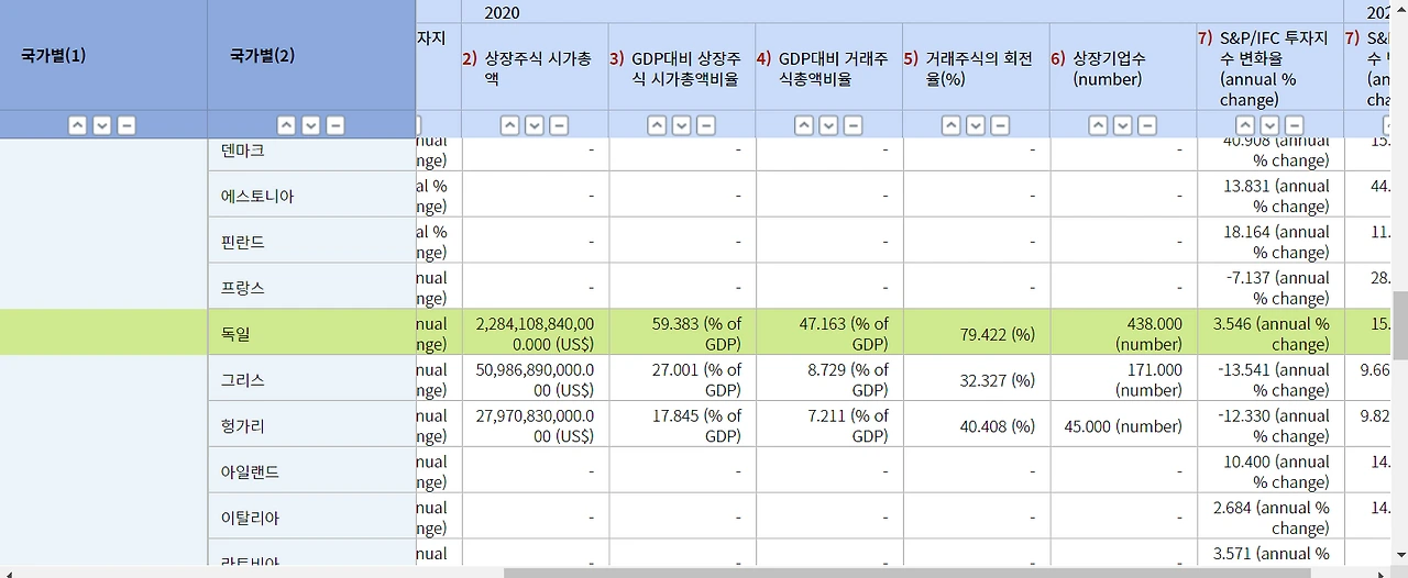 독일의 2020년 기준으로 주식 시장에 상장된 회사는 438곳이 있네요. 각 회사의 시총을 모두 합하면, 2.284조 달러네요. 한화로 대략 3300조 정도네요.