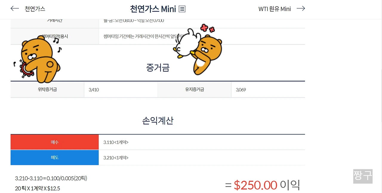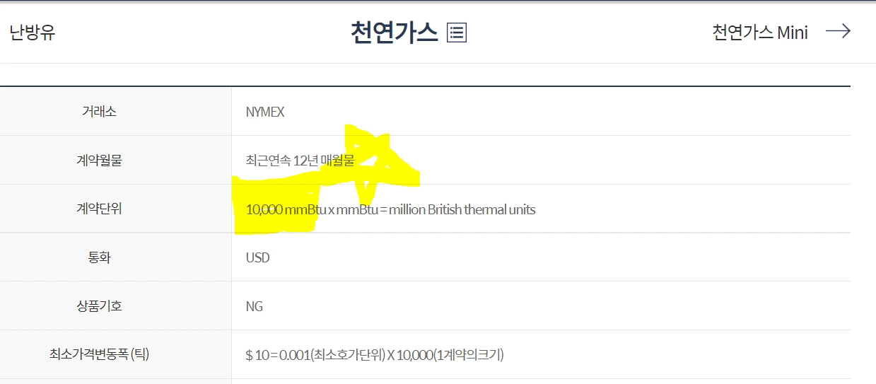 제가 예시를 조금 더 구체적으로 들기 위해 '천연가스 미니(mini)'를 실제로 매매한다고 가정해보겠습니다.