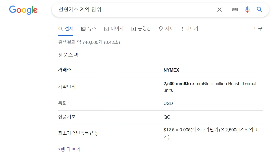 천연가스 1 단위에 7.817 달러를 주고 매수해야 하고, 계약의 최소 단위는 천연가스 2500 단위를 매수해야 합니다.