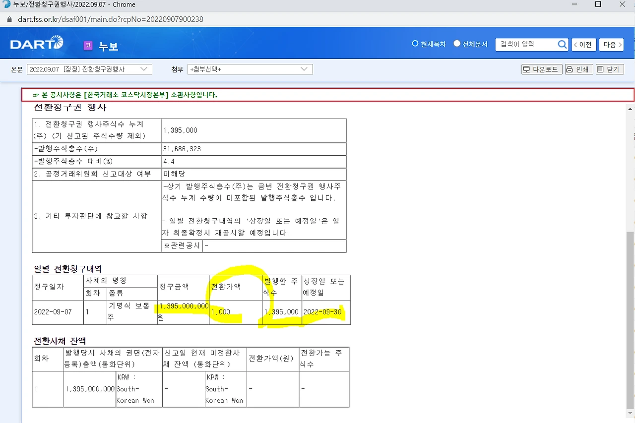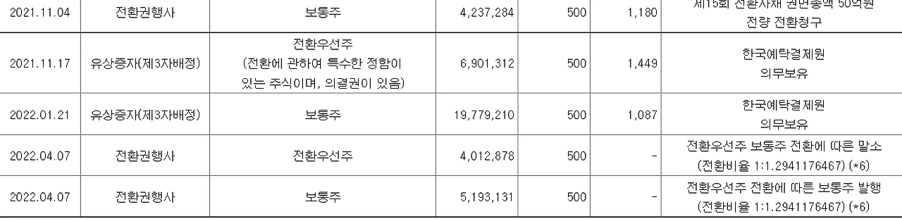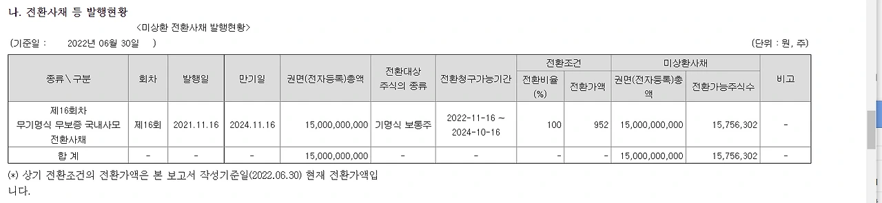 21년 11월 16일 전환사채 150억을 발행했습니다. 1주에 952원으로 계산하면 1575만 주...입니다....