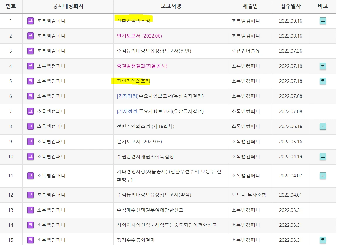 7월 18일에 전환가액이 최근 주가의 흐름을 반영하여 조정되었습니다. 9월 16일에도 조정되었습니다.