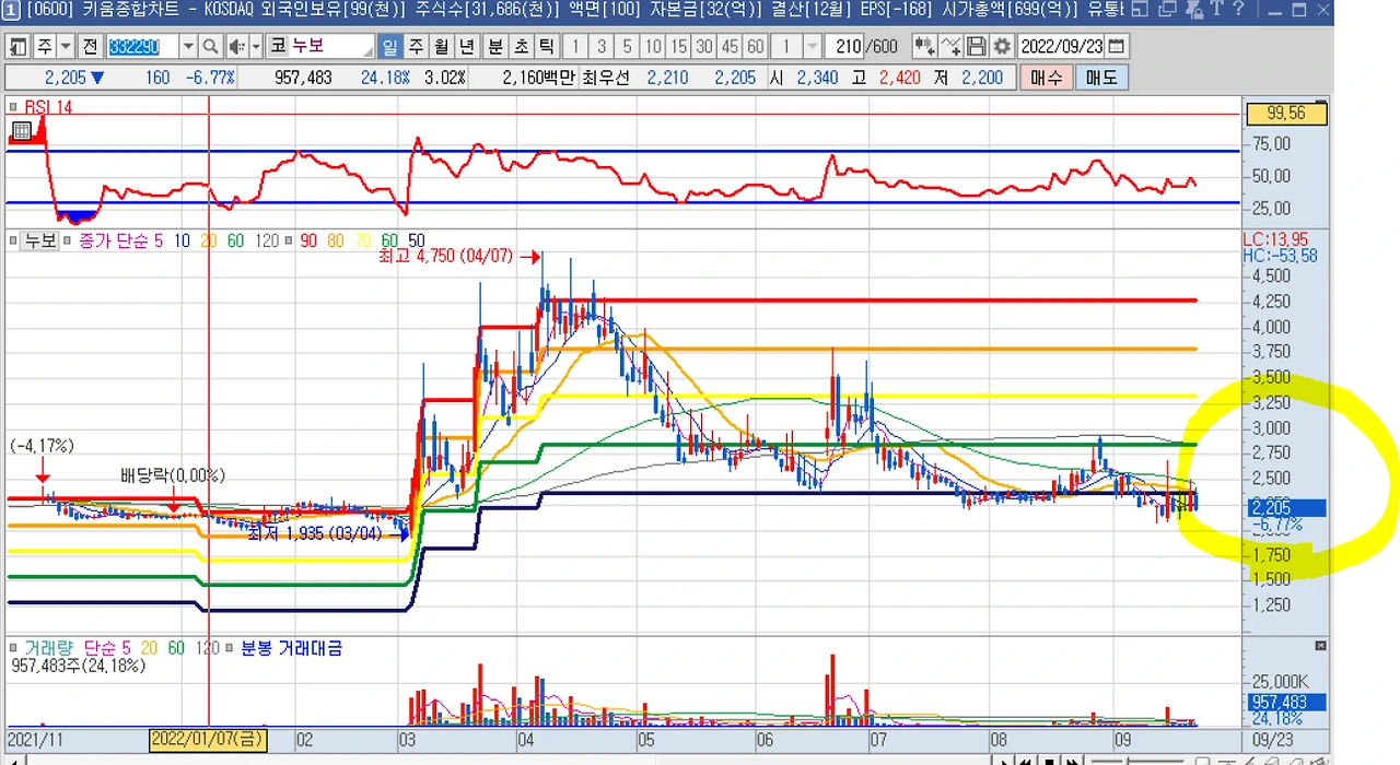 상상을 해보세요. 만약에 여러분이 2019년 가을에 누보라는 주식을 1주에 1천원씩 1만 주만 사들였다고 말이죠. 시간이 흘러, 2022년 9월 30일이 됐습니다. 그때까지 2천원이라는 가격대가 계속 유지된다면, 100%의 수익률을 달성할 수 있지 않겠습니까?