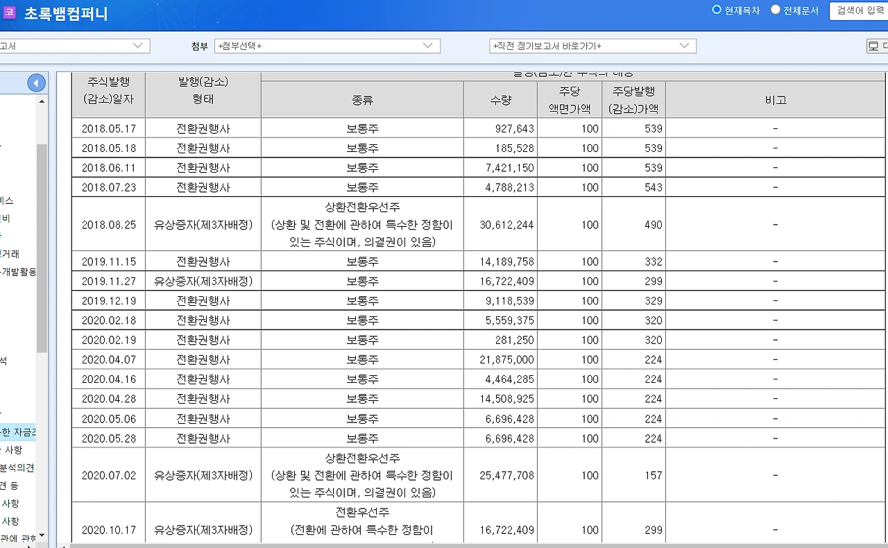 '초록뱀 컴퍼니'. 무엇을 하는 회사인지 잘 모르더라도, 주식 차트만 놓고 보면 괴랄하다고 생각이 들 수밖에 없다고 생각합니다. 이 회사도 '전환사채'를 발행했고, 여기에 투자한 사람들이 있습니다.