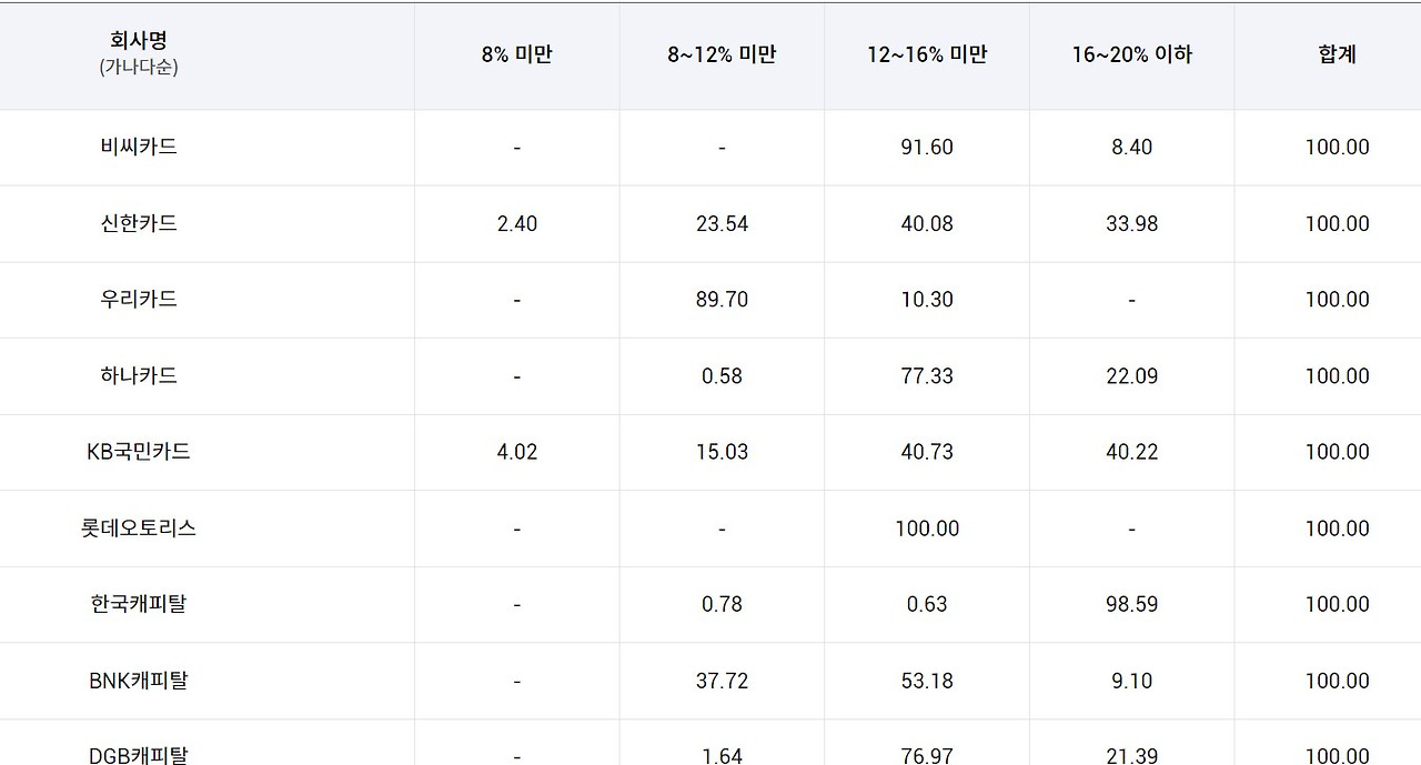 연체율 증가 추이가 23년에 접어들어서 점차 가팔라지고 있네요. 카드사의 리볼빙 자산 역시 23년도에도 계속해서 증가하고 있습니다. 리볼빙과 카드론이 불러올 국내 경기 부진 효과는 언제쯤 발현될지 모릅니다. 다만 아래 고리대금업을 연상케하는 수수료와 이용자수 분포도를 본다면, 머지 않아 양극화가 더욱 심화될 수 있다는 생각이 드네요.
