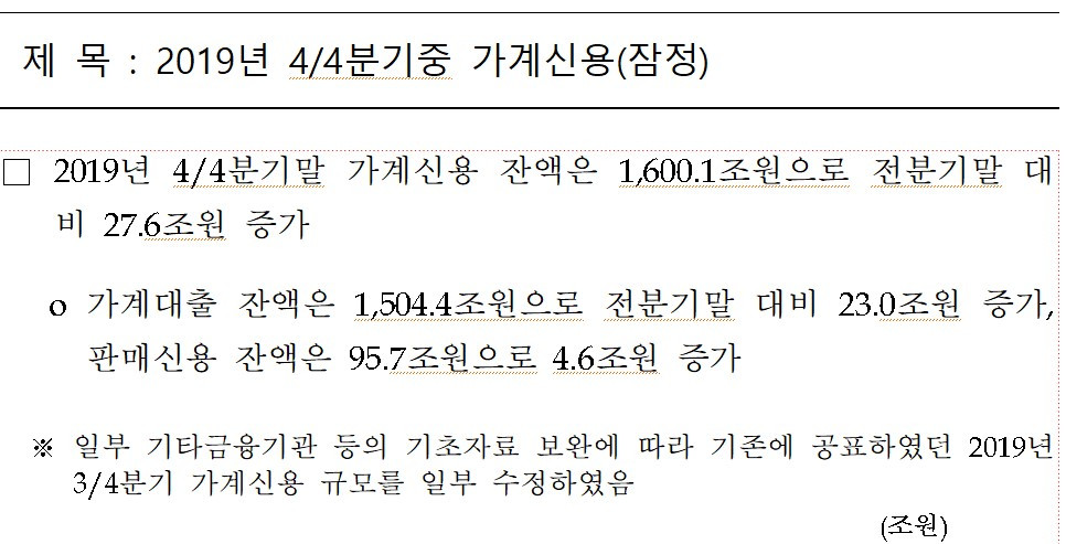 2019년 연말 기준 가계신용 잔액은 1600조원이었으며, 코로나19 유행 직후 20년 말 가계신용 잔액은 1726조원으로 심히 우려되는 수준으로 단기간에 증가했습니다. (판매신용이란? 카드사 및 할부금융사 외상판매를 말한다. -한경 경제용어사전)