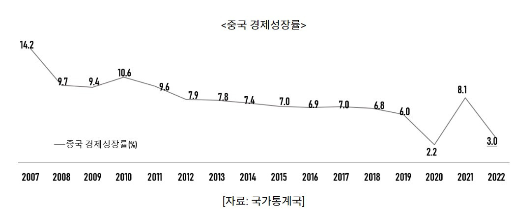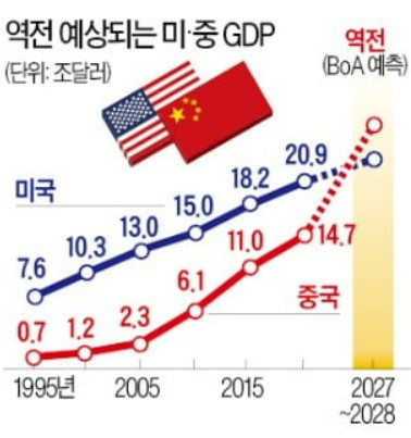 하지만 작년 중국은 개혁개방 이후 가장 낮은 3.0% 성장을 기록했으며, 미국은 2.1% 성장을 기록했습니다.