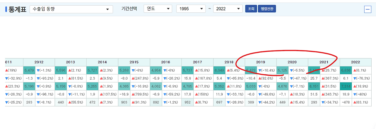2018년부터 미중 간 무역 전쟁이 시작됐으며 20년도 코로나19 유행으로 인해 양국 간 충돌은 지연되고 있는 상태입니다. 양국의 싸움에 새우는 등이 터지기 직전이었으나 어찌 보면 코로나 탓에 숨을 돌리고 있는 상태입니다. 2023년 수출입 증감을 글 첫머리에 보셔서 알겠지만, 올해 수출 증감은 전년 대비 상당히 떨어질 것으로 전망됩니다. 한국무역협회는 올 6월에 23년 수출이 전년 대비 -7.7%에 불과하다고 예상했습니다.