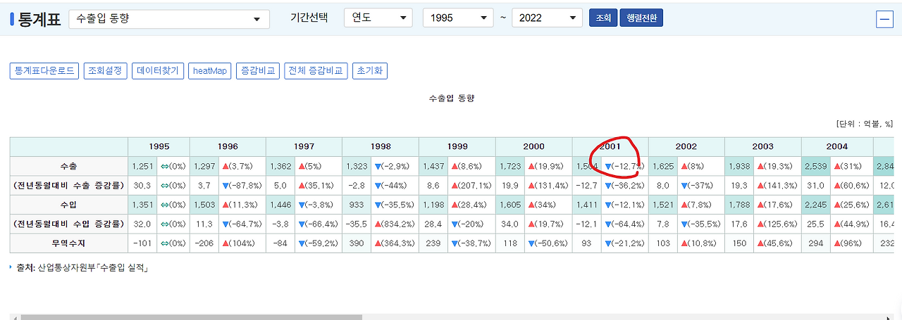 조금 더 넓게 한국의 수출 증감을 살펴봅시다.