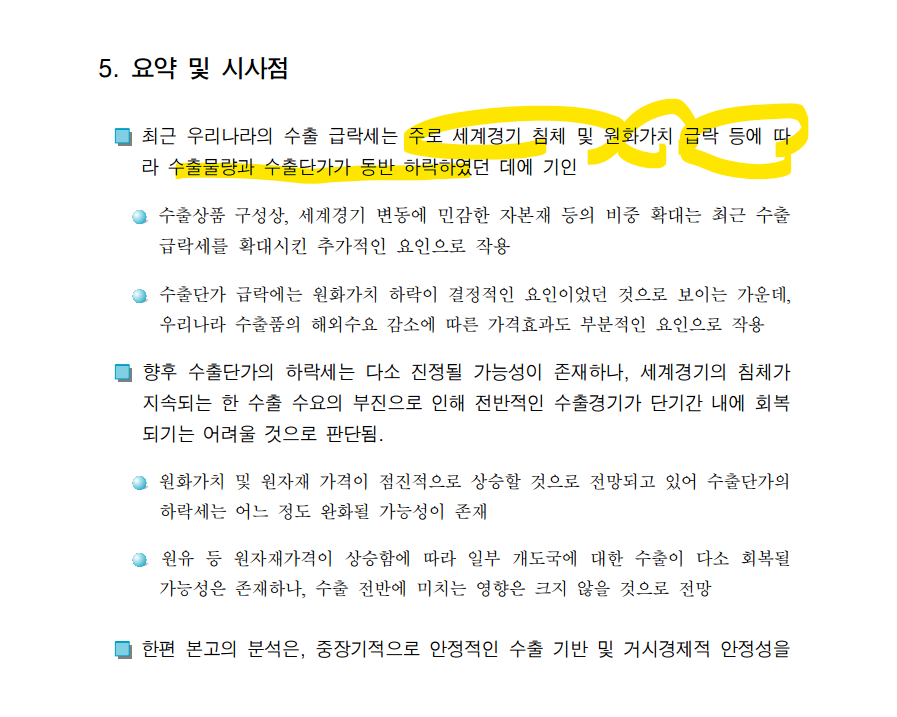 1줄 요약: 수출이 감소하게 되면, 증시가 먼저 반응하므로 수출 회복세가 더뎌지면 더뎌질수록 국내 주식 보유량을 축소해야 합니다.