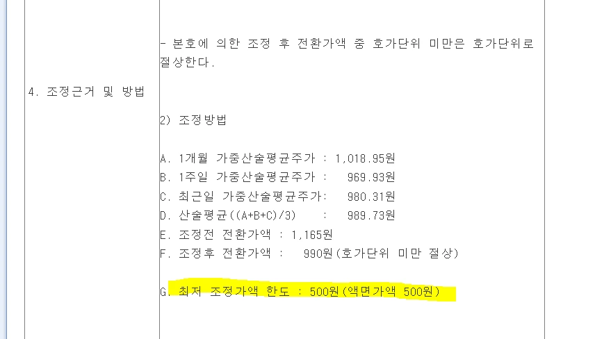다시 말해서 조정한도를 별도로 지정하지 않은 비덴트 17회차 18회차 cb는 최저 조정가액인 '500'원까지도 가능하답니다. 그러면 이런 생각이 들 수 있습니다. '설마' 그 가격대까지 내려가겠어? 그래도 비덴트인데~ ?