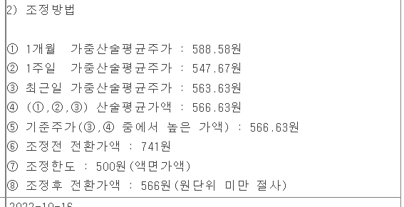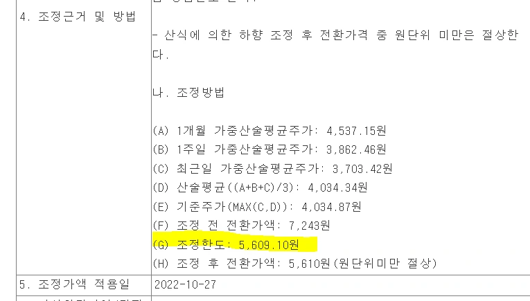 10월 31일 CB 및 BW를 발행한 회사들의 가액 조정.